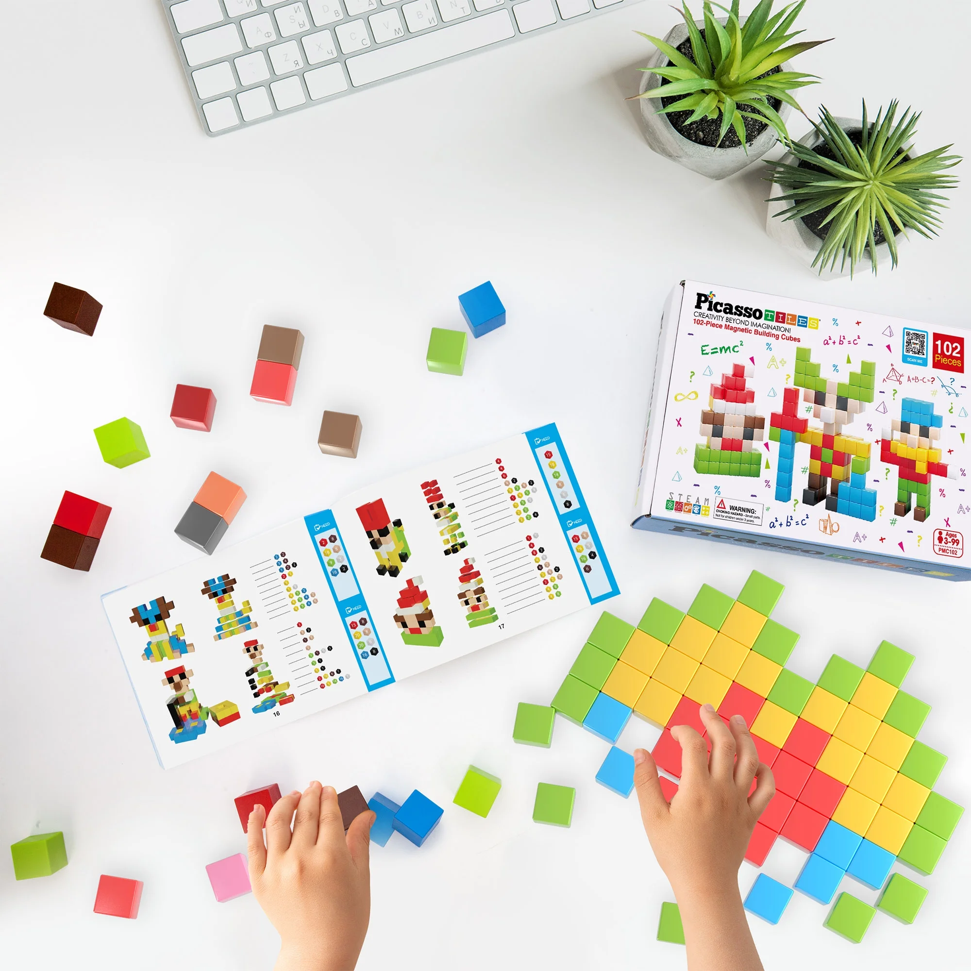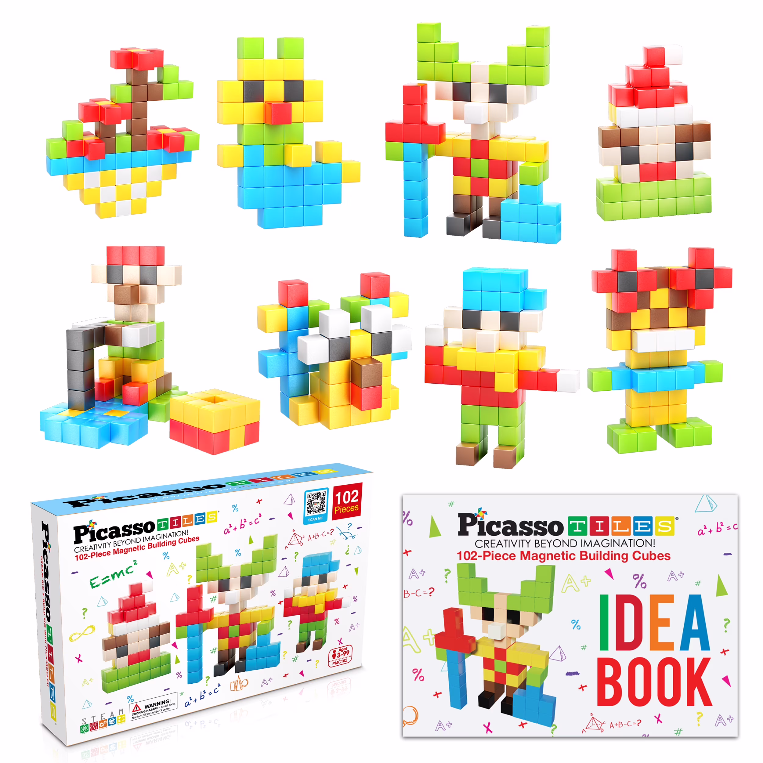 PicassoTiles Kids Pixel Magnetic Puzzle Cube 102pcs Mix & Match Cubes with Idea Book Sensory Toys