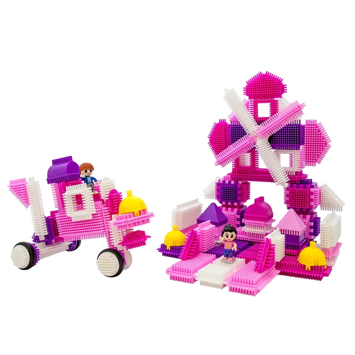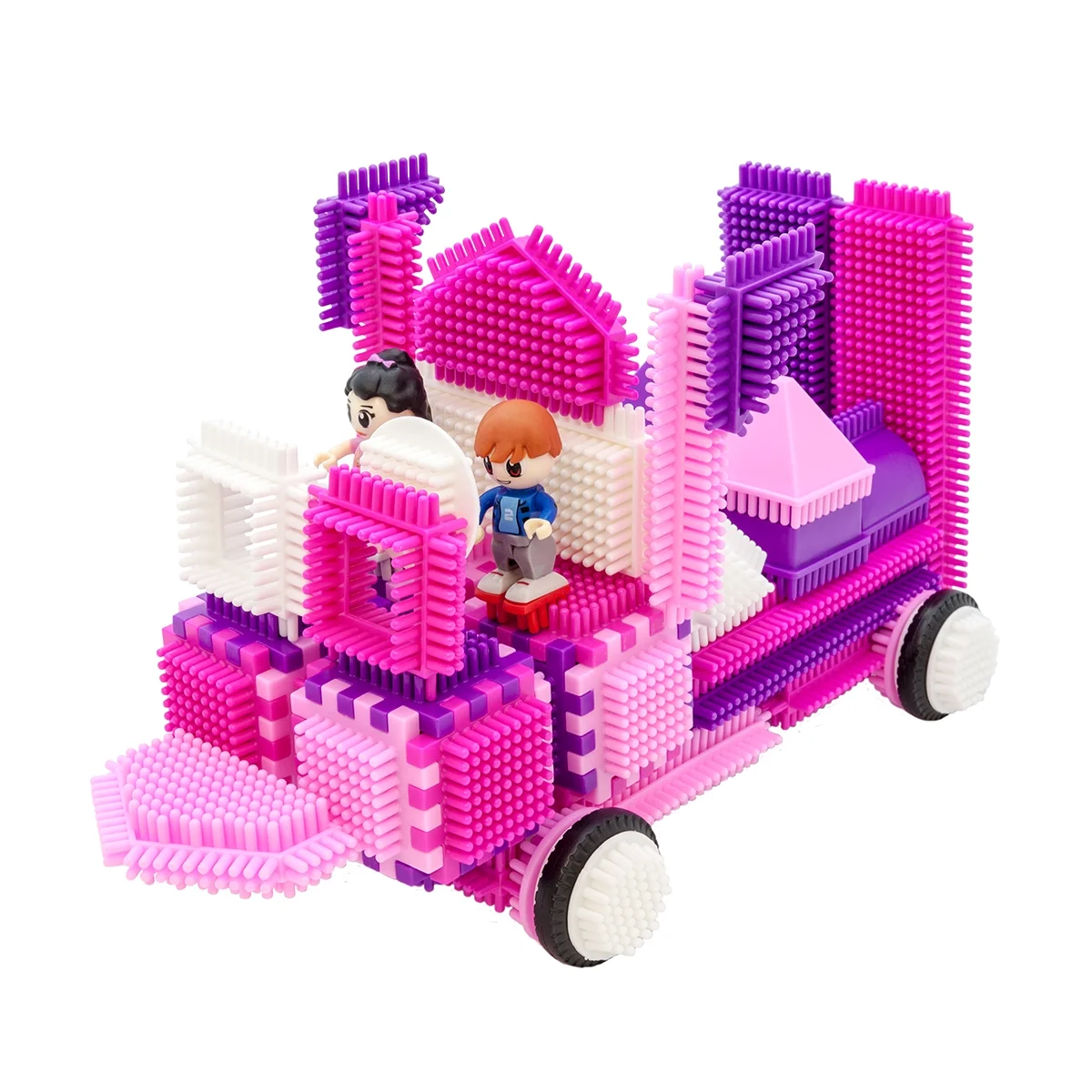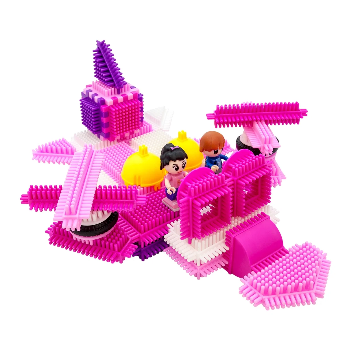 PicassoTiles 106pcs Hedgehog Building Blocks Tiles Castle Theme Set with Human Figures Learning Playset STEM Toy Kit PTB106, Pink