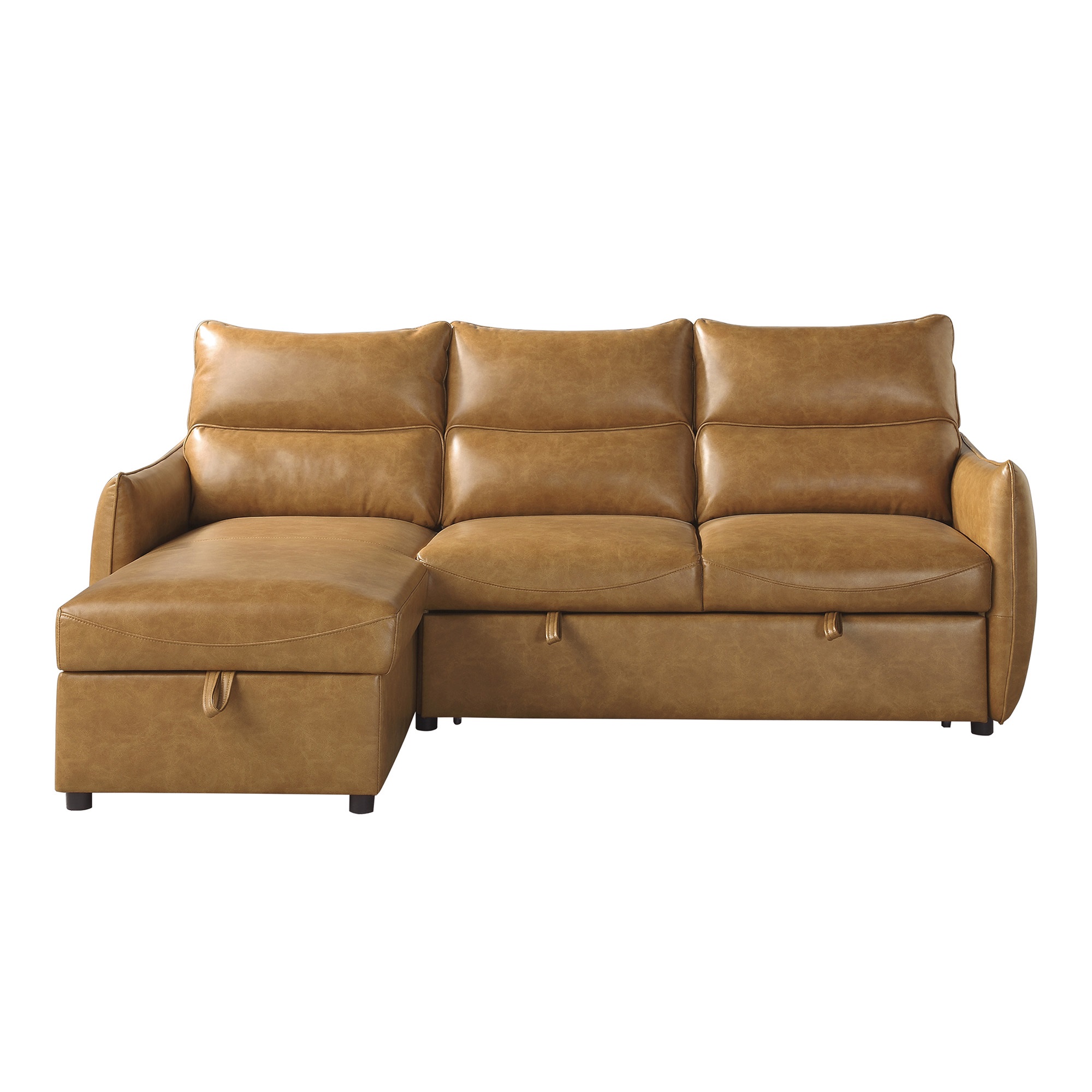 Dunleith 94 in. Wide 2-Piece Reversible Sectional Sofa in Brown Faux Leather Upholstery w/ Pull-out Bed and Hidden Storage