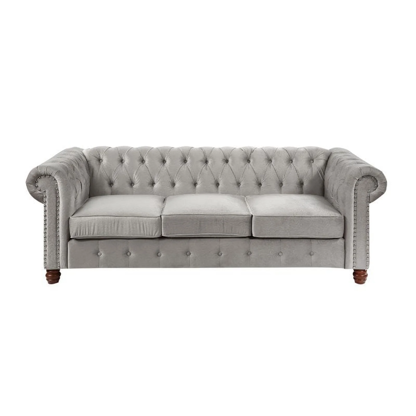 Furniture of America Carrie Microfiber Nailhead Loveseat in Beige