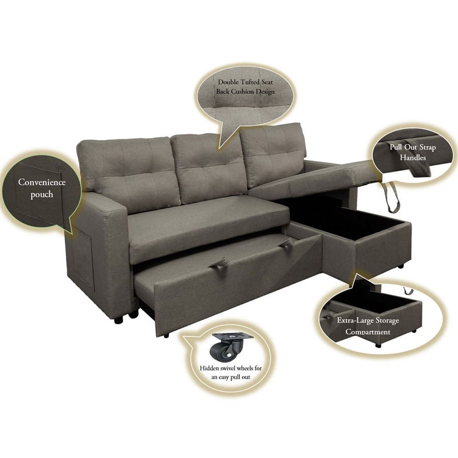 Bowery Hill Reversible/Sectional Sleeper Sofa, Pull Out Sleeper Bed with Storage in Beige
