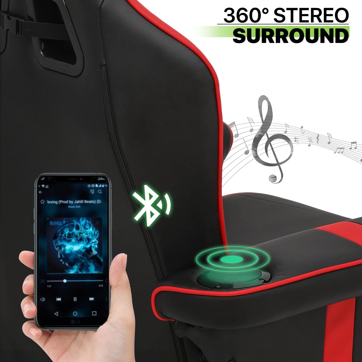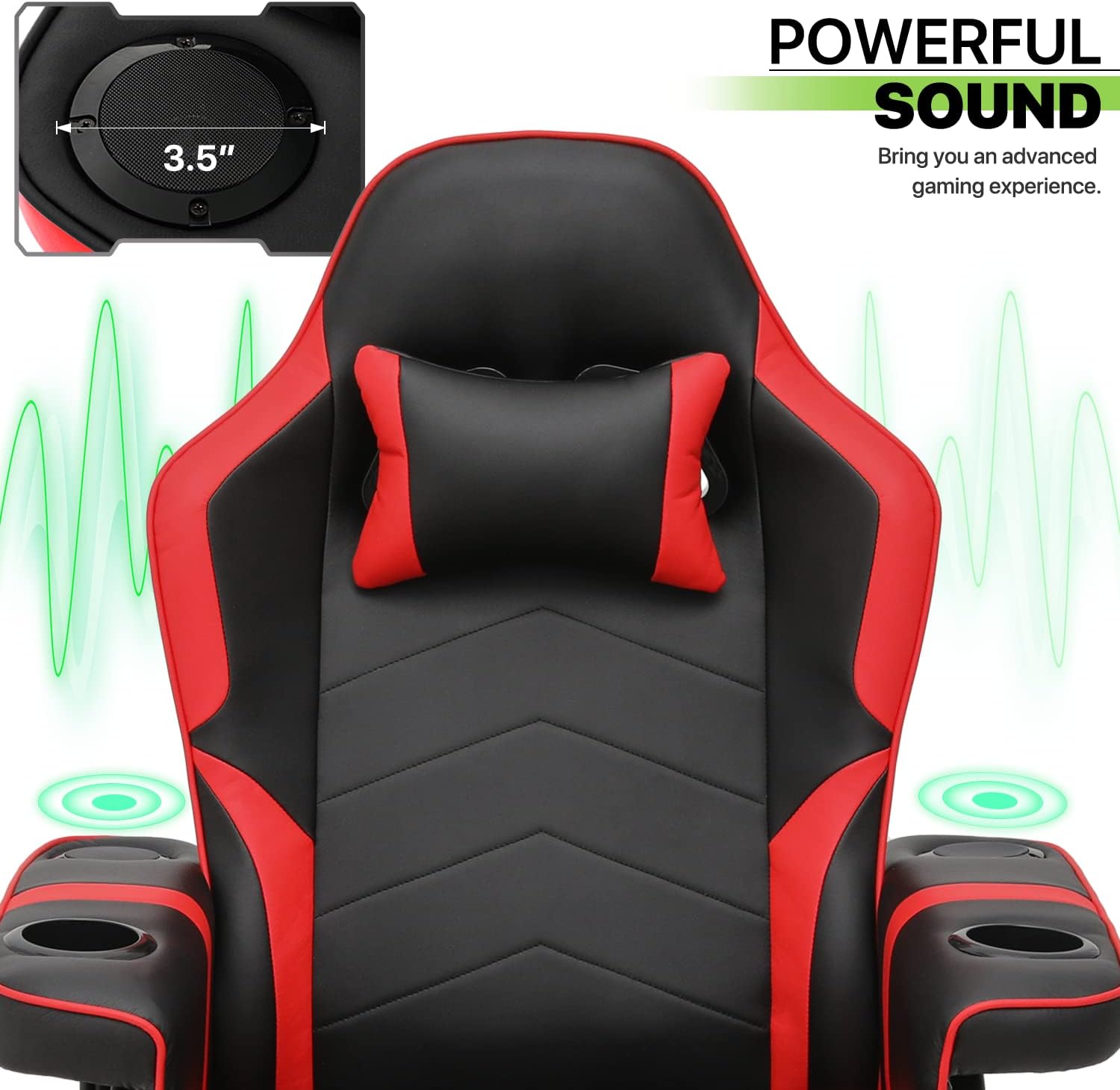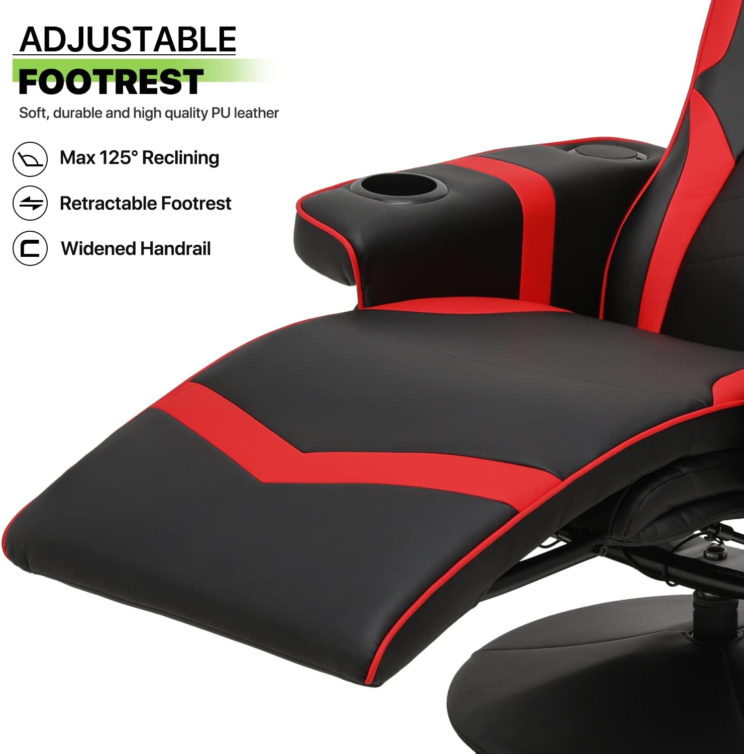 Recliner Massage Chair Comfortable High Back PU Leather Video Gamer Lounge Chair Home Bedroom Theater Seat 360° Swivel Computer Game Chair With Neck Support, Footrest, Cup Holders, Red