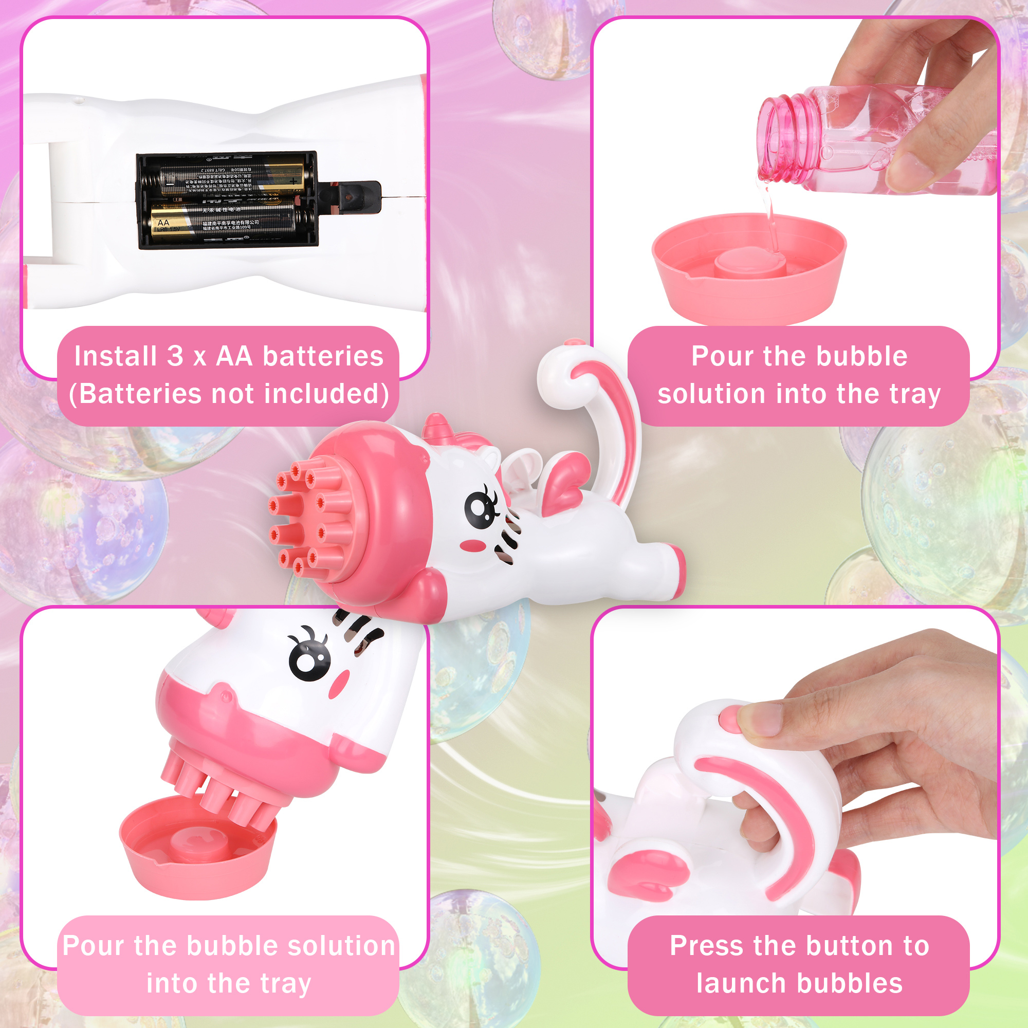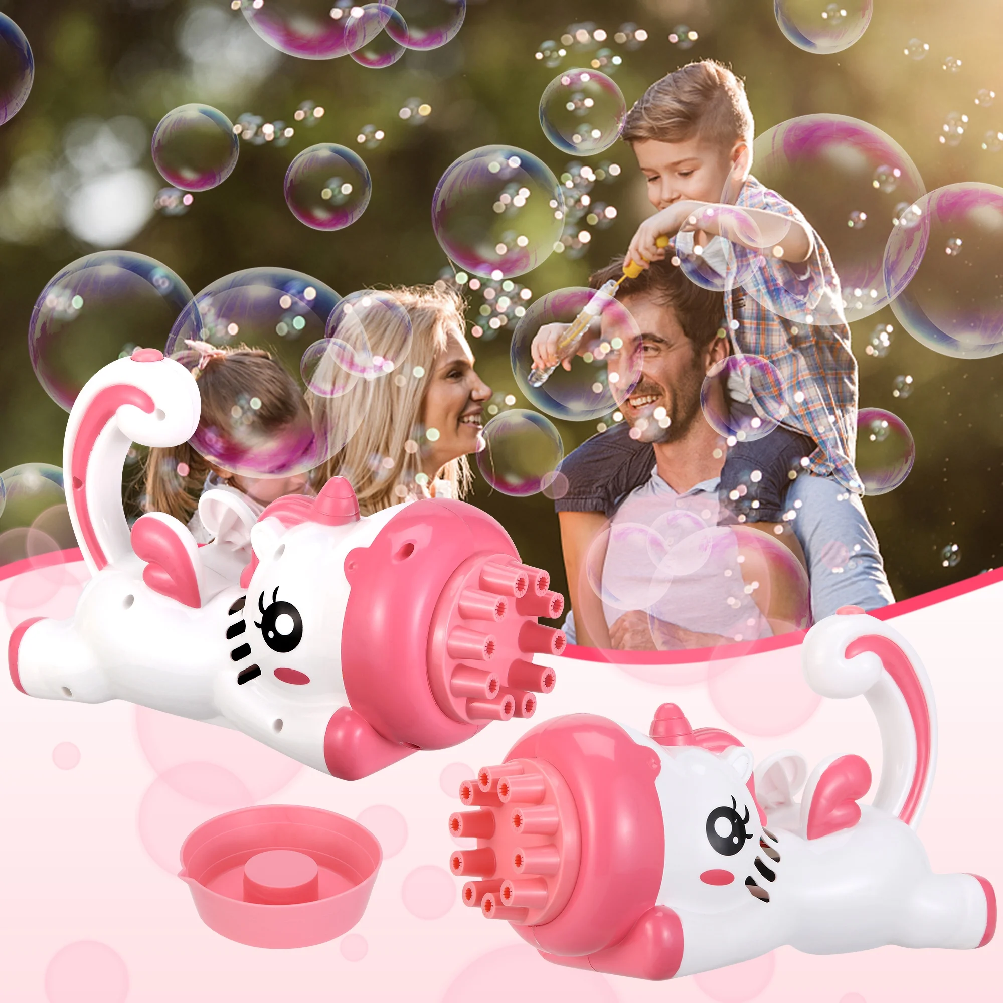 LELINTA 2PACK Bubble Gun Bubble Machine Handheld Tiger Dinosaur Unicorn Bubble Maker with Bubble Solution & Tray for Boys Girls Age 3 4 5 6 Years Old