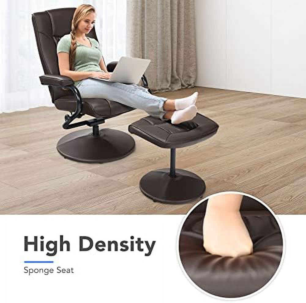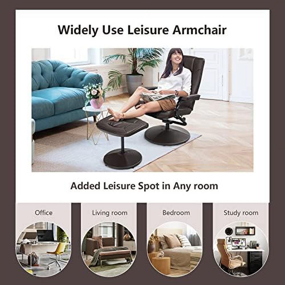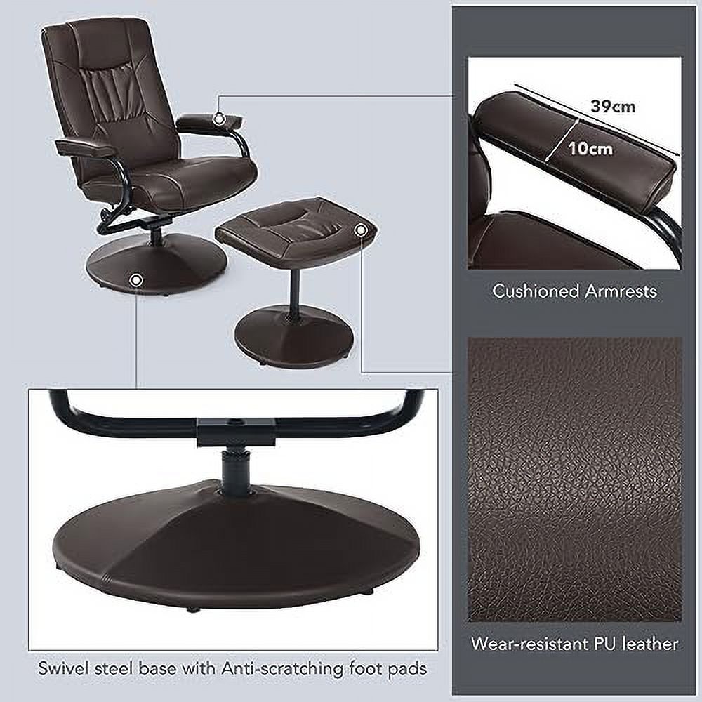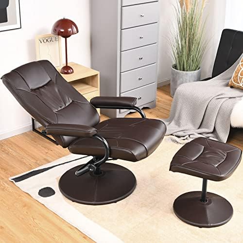 xrboomlife Swivel Recliner Chair PU Leather Lounge Armchair Recliner Degree Swivel Overstuffed Padded Seat Chair with Footrest Stool Ottoman Set for Office Living Room Brown
