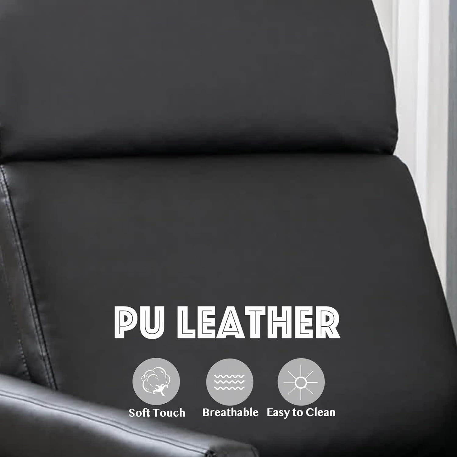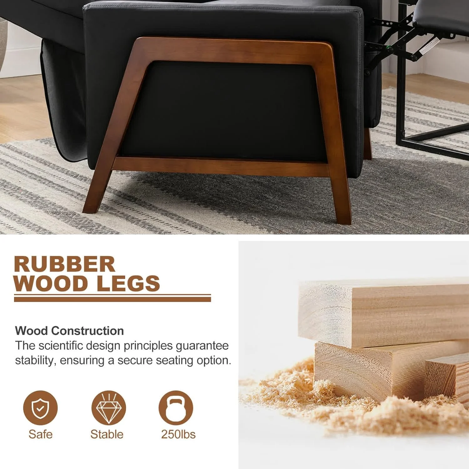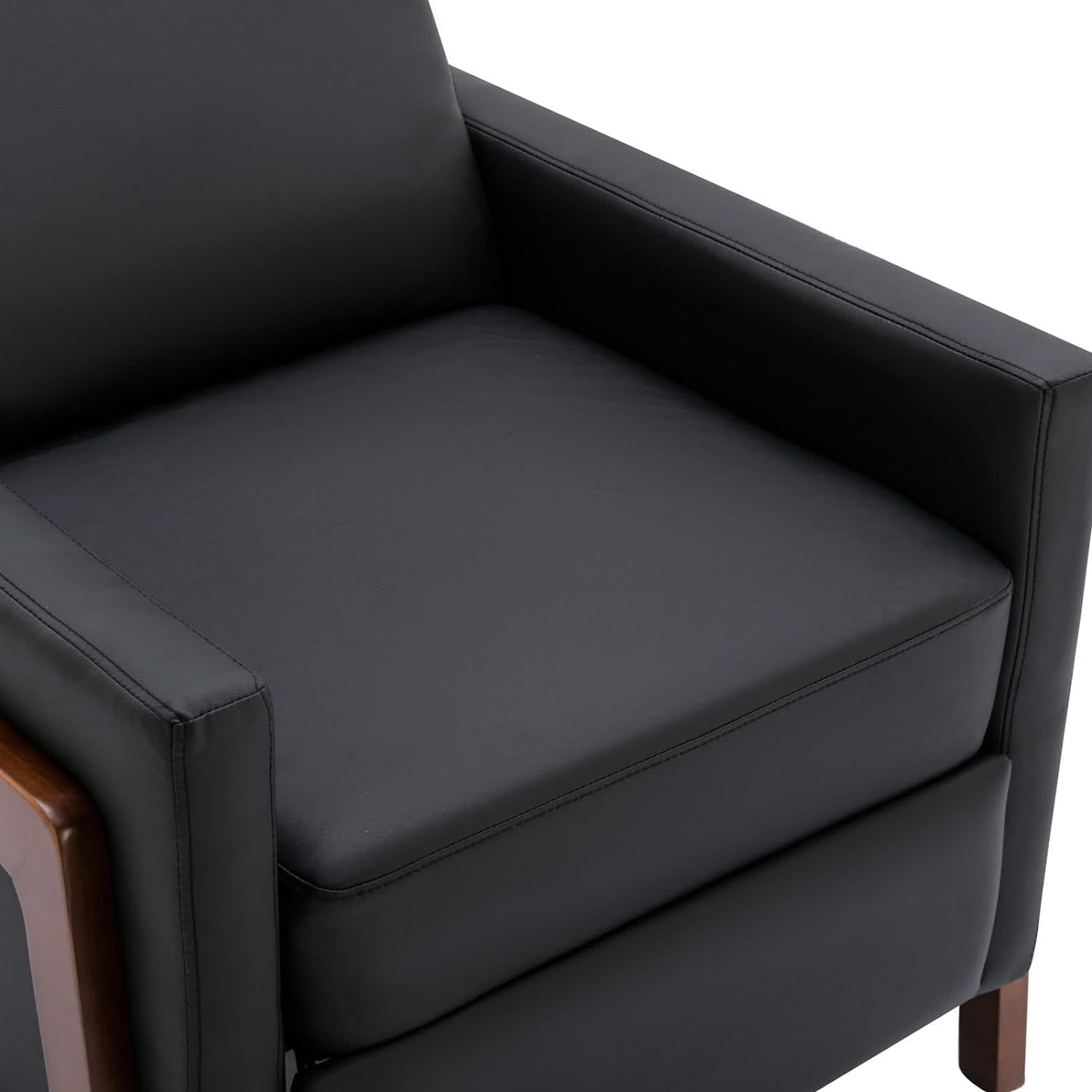 Wood Recliner Chair, Modern PU Leather Accent Chair, Adjustable High Backrest, Home Theater Seating with Thick Cushion, Upholstered Lounge Chair for Living Room, Bedroom, Office, Hotel, Black