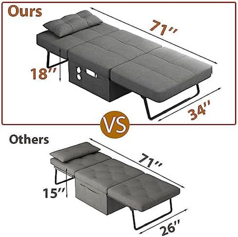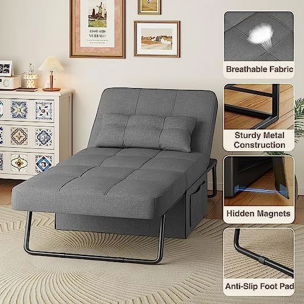 TJUNBOLIFE Sleeper Chair Bed 4 in 1 Convertible Chair Sofa Bed Assembly-Free Sofa Chair Bed with Adjustable Backrest Linen Fabric for Living Room Apartment Office Dark Grey
