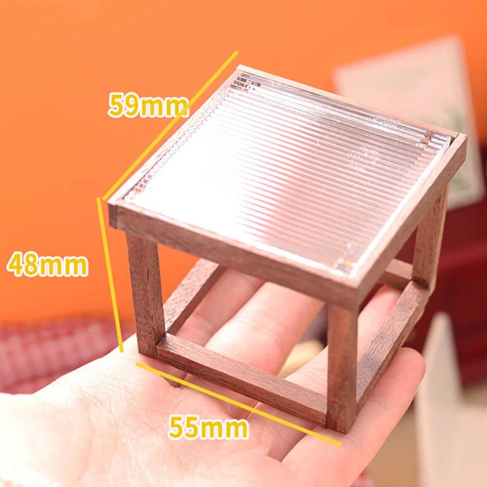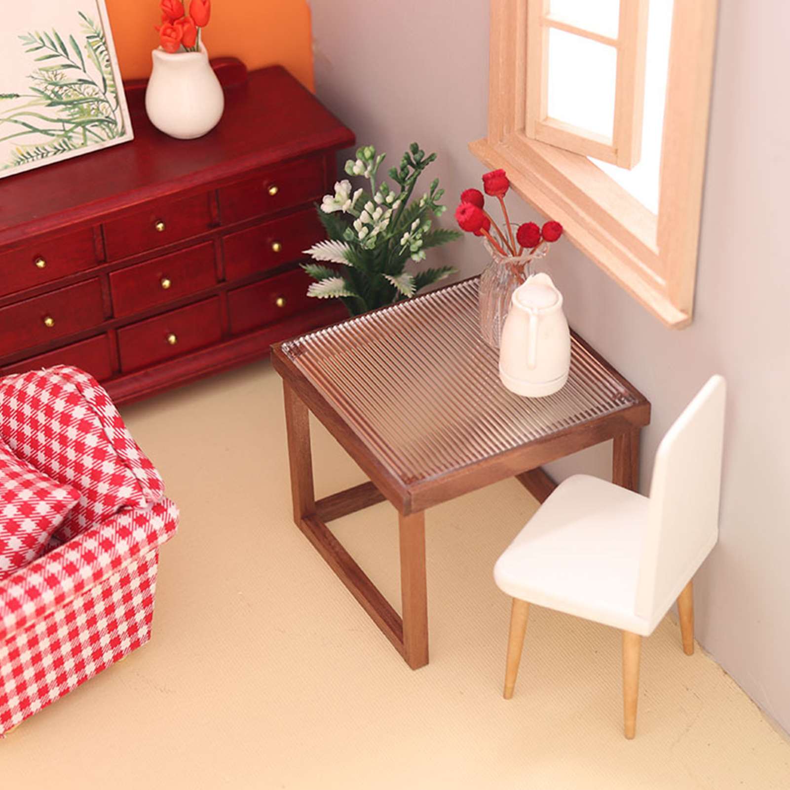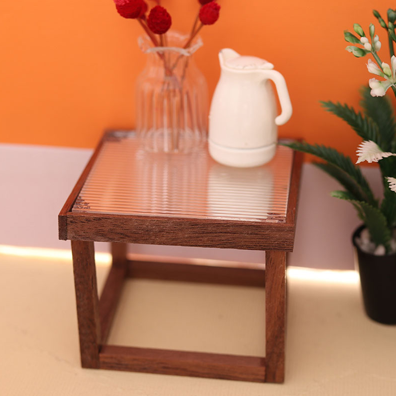 Pnellth Miniatures Table Realistic Fine Workmanship Modern Three-dimensional Compact Decorate Acrylic Black Walnut Wood Mini Table for 1/12 Doll House