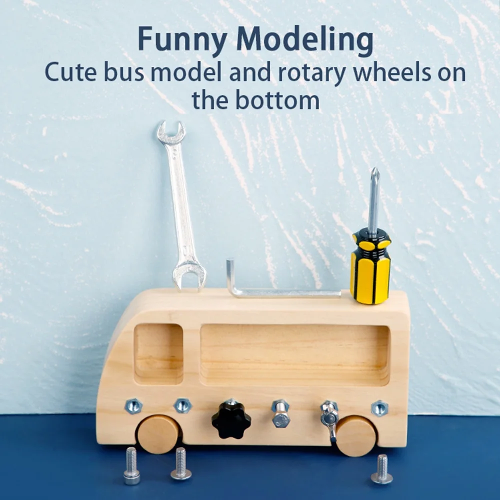 Eummy Montessori Screw Driver Board for Kids Montessori Materials Basic Skills Educational Learning Toys for 3 4 5 Year Old Kids Toddlers Screw Sorter Game Wooden Busy Bus Sensory Toy Preschool Clas
