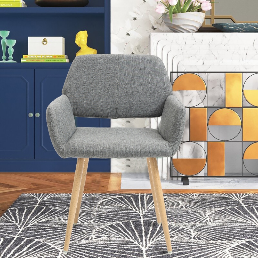 Kahomvis Modern Open Back Upholstered Dining Chair with Wood Legs gray Upholstered Mid-Century Modern