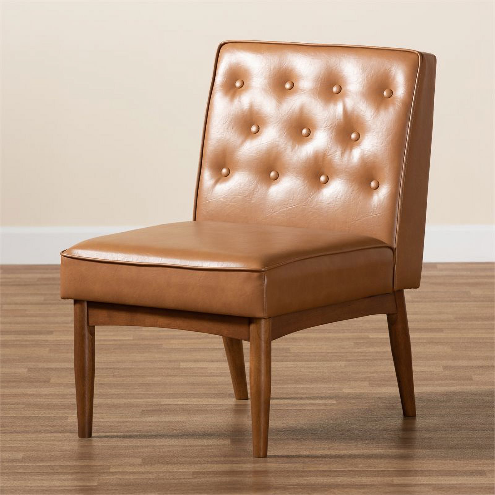 Bowery Hill Mid-Century Tan and Walnut Brown Finished Wood Dining Chair