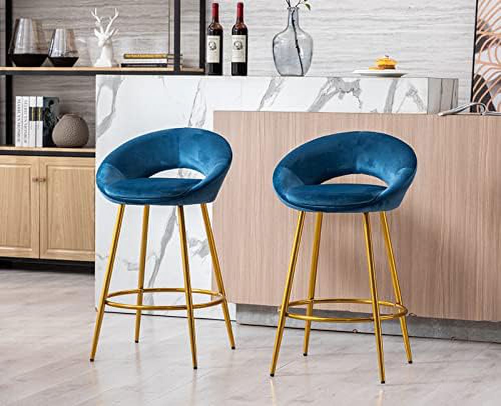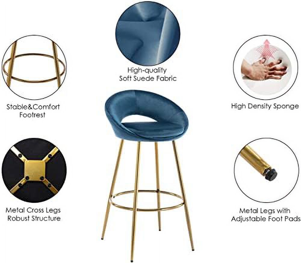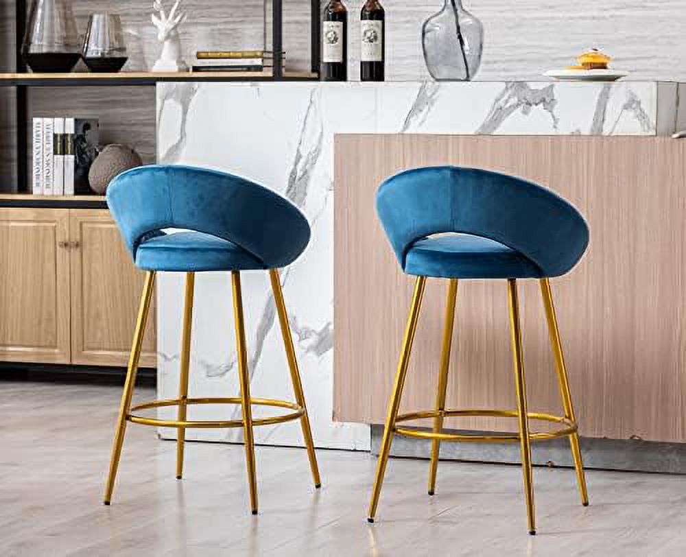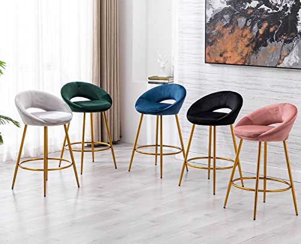 NLIBOOMLife Lovely 30" Velvet Stools with Gold Metal Legs Mid Century Modern Stools Low Back for Kitchen Island Home Pub-Silver