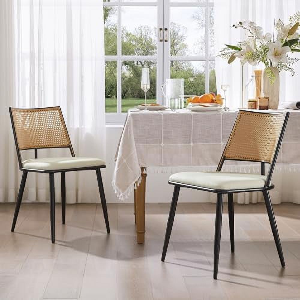 GEROBOOM Rattan Dining Chairs Upholstered Linen Kitchen Chairs with Metal Frame and Rattan Backrest Mid-Century Modern Dining Chairs for Dining Room and Living Room(Wood Color)