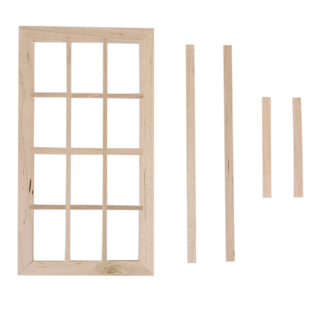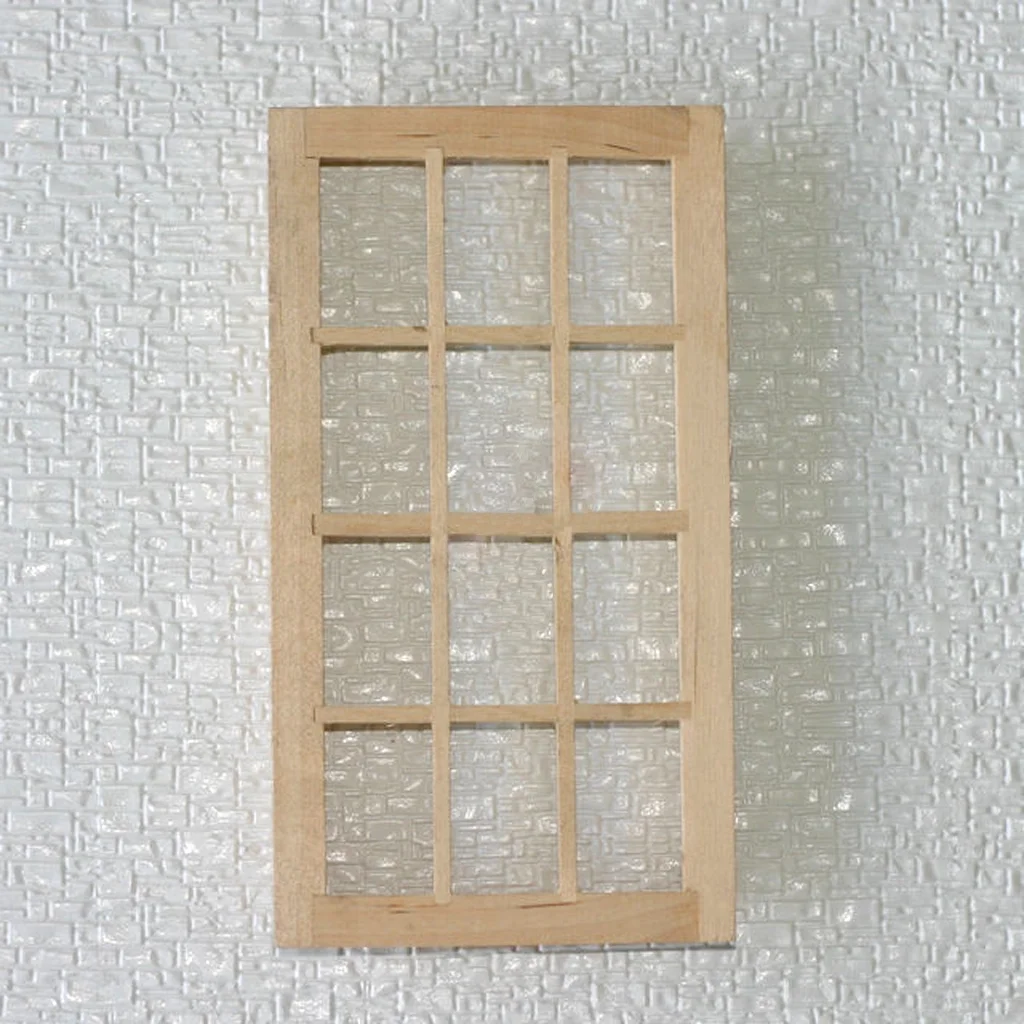 1/12 Dolls House Miniature Unpainted DIY Wooden 12-pane Window Vintage
