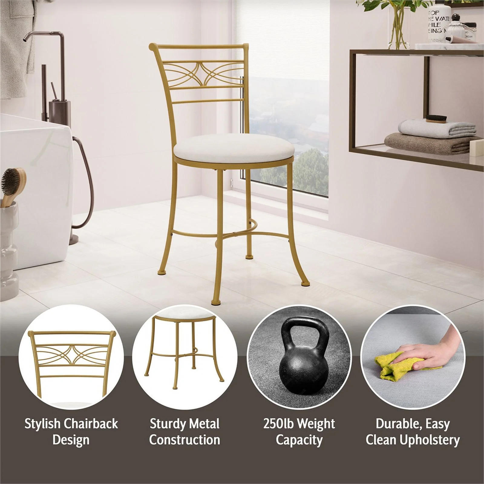 Hillsdale Furniture Dutton Metal Vanity Stool with Center Diamond Design Gold
