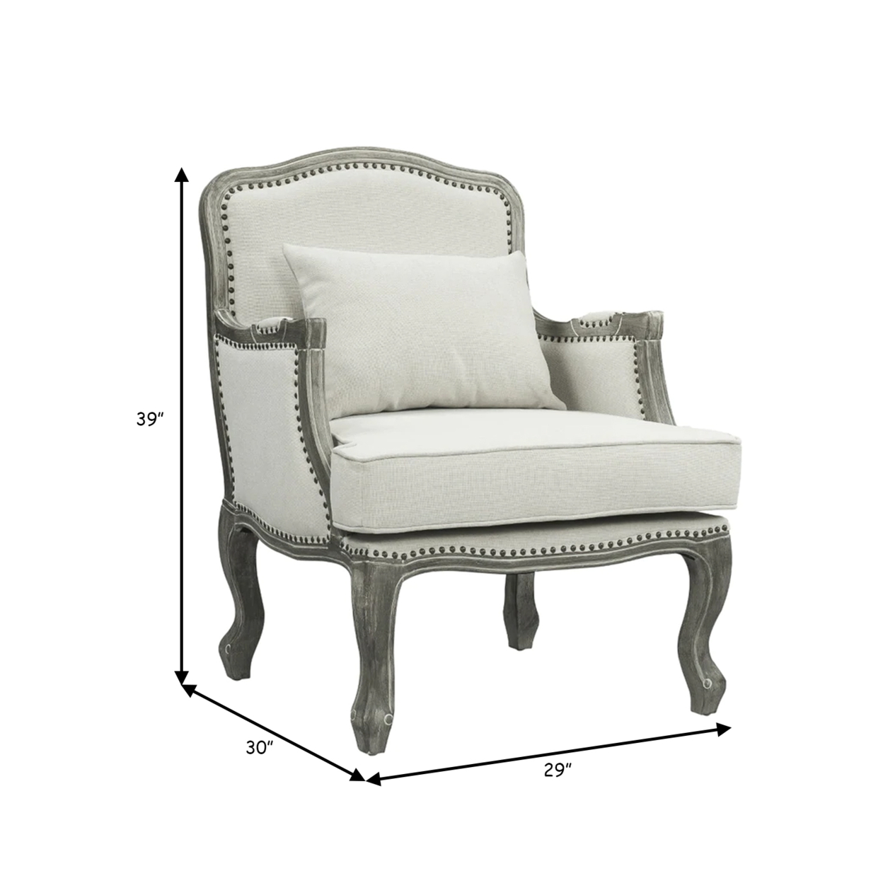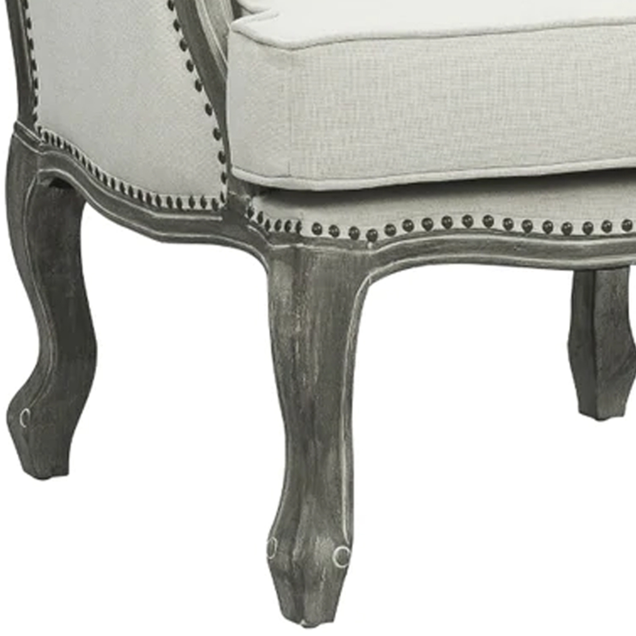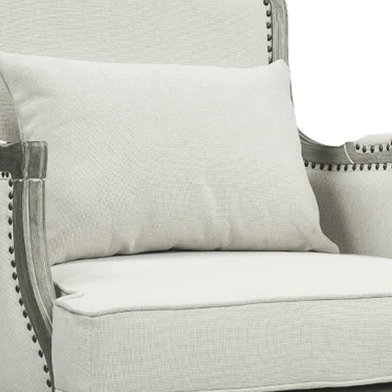 Warn 39 Inch Classic Accent Chair, Nailhead Trim, Box Cushion, Cream, Brown- Saltoro Sherpi