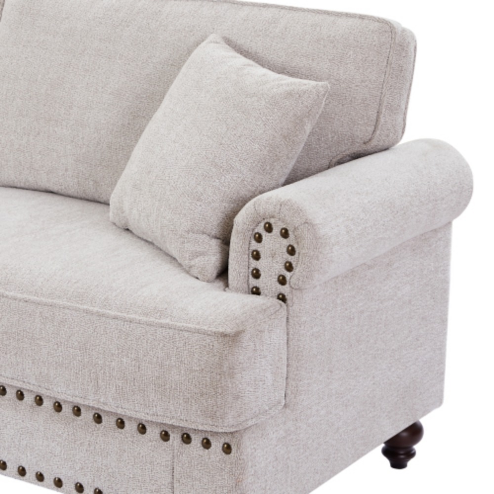 Chenille modern Upholstered Sofas 2 Seater Couches with Nails and Armrests (White)
