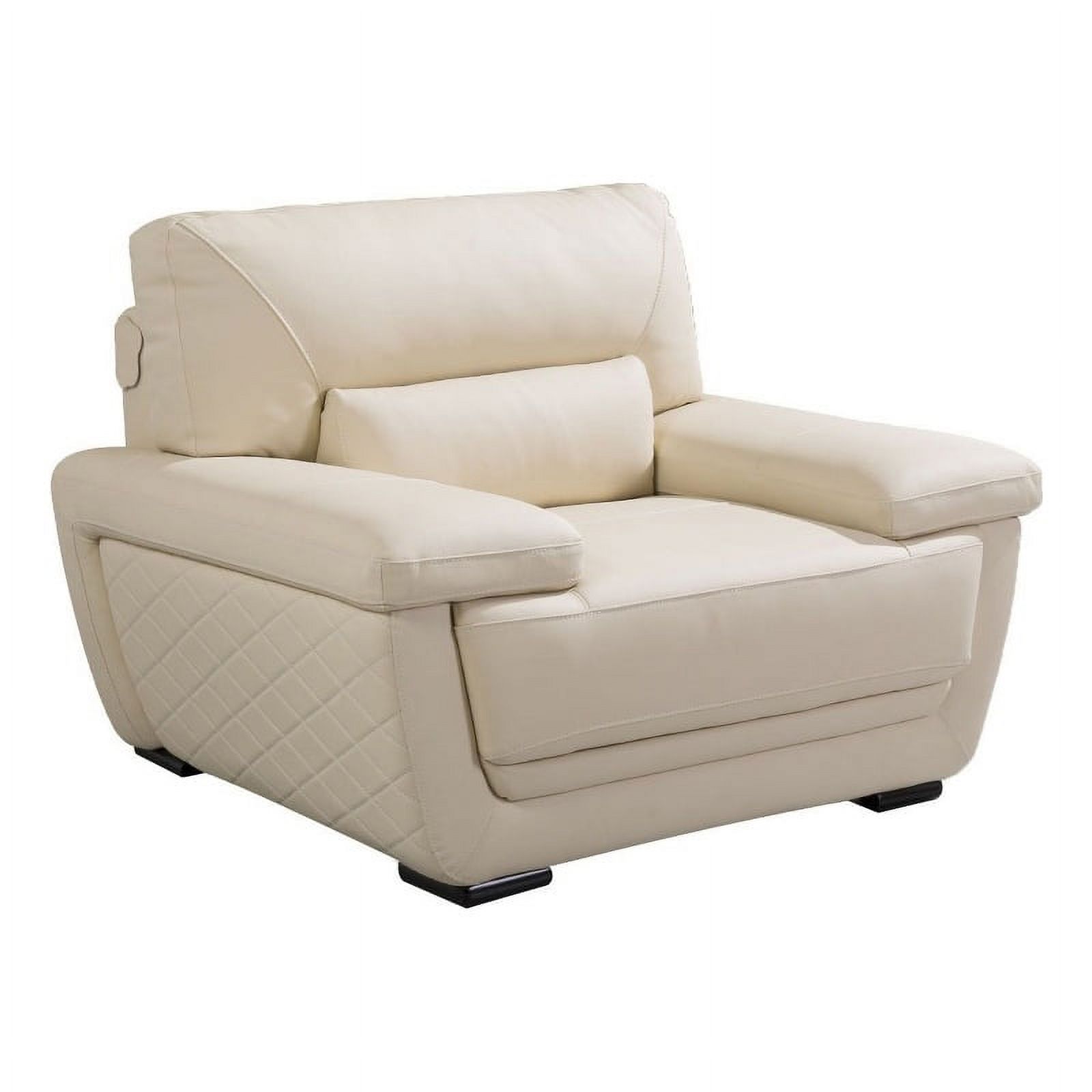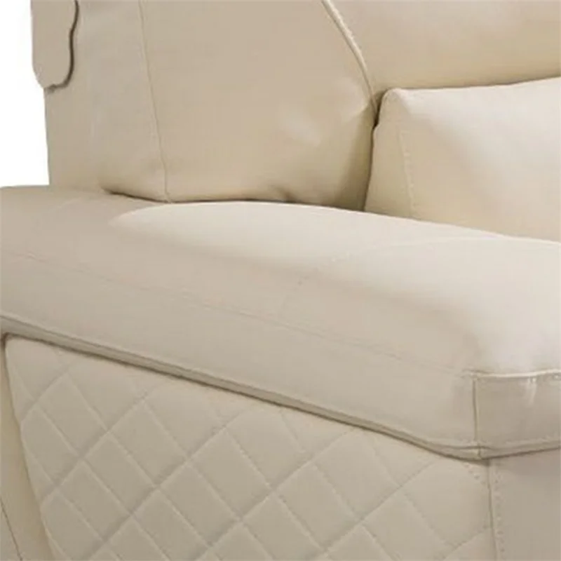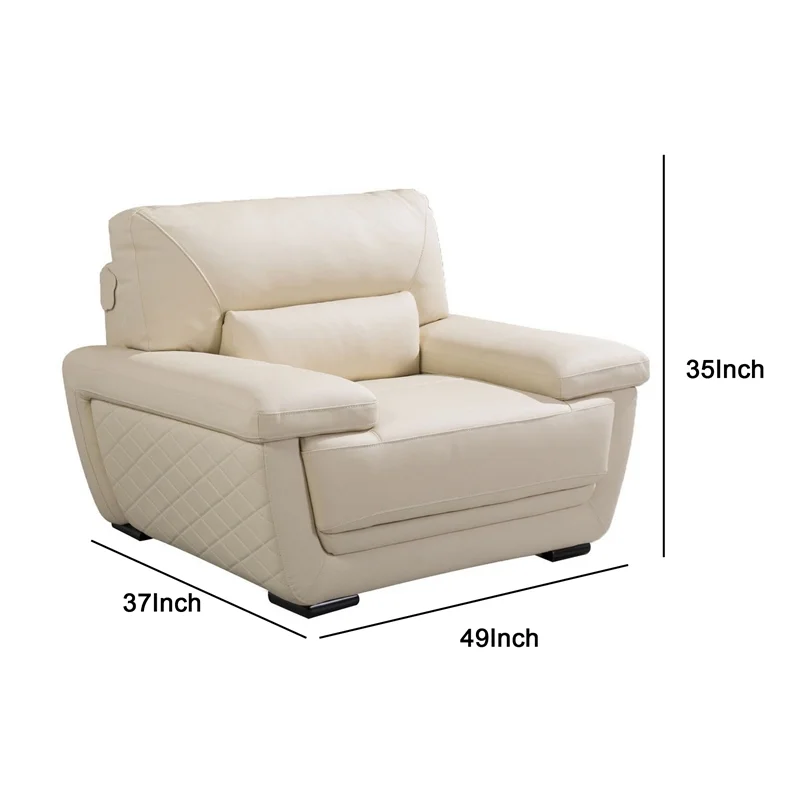 Leatherette Chair with Attached Waist Pillow and Diamond Pattern Cream