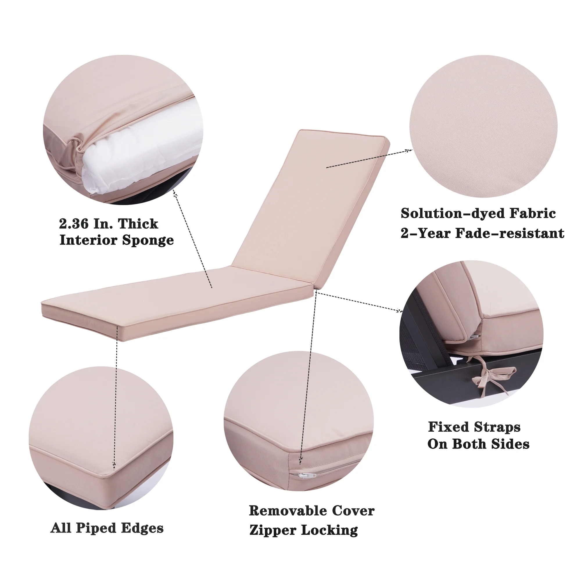 Dcenta 2PCS Set Outdoor Chair Cushion Replacement Patio Funiture Seat Cushion Chaise Cushion