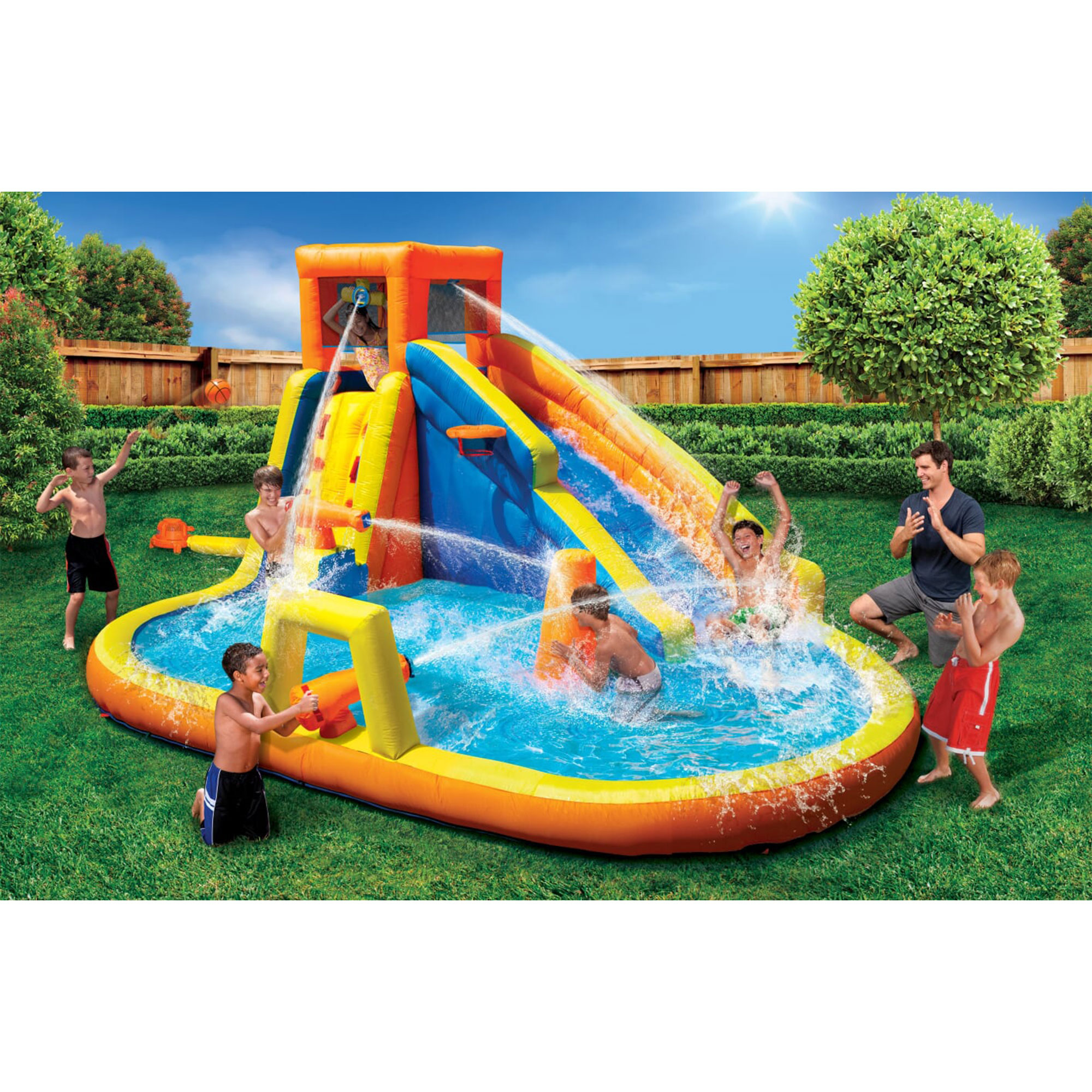 Banzai Inflatable Battle Blast Adventure Park w/ Motor and Battle Bop Combo
