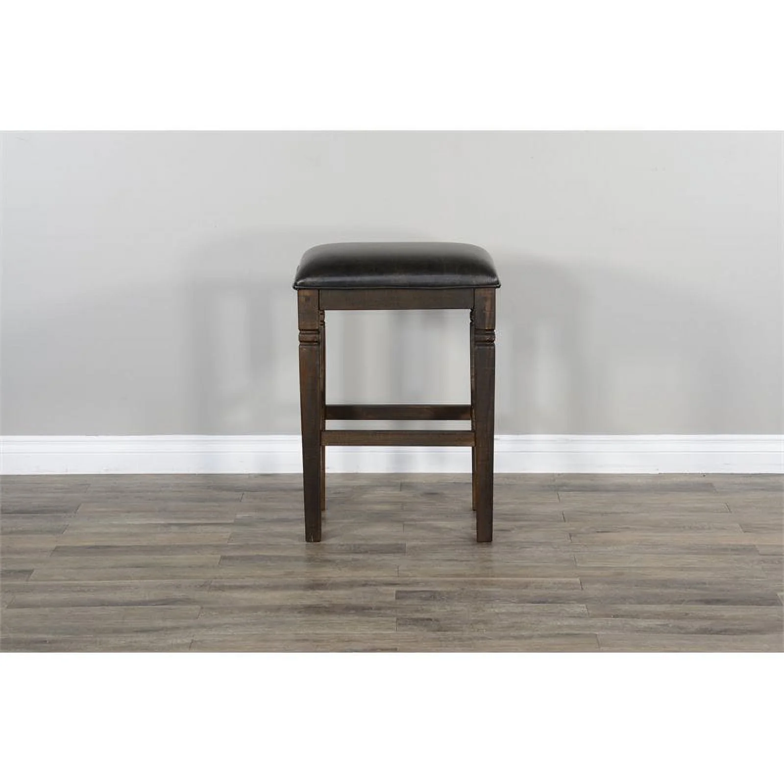 Lancaster Home Transitional Walnut Counter Height Stool - 20"W x 22"D x 36"H Black Leather N/A Faux Leather