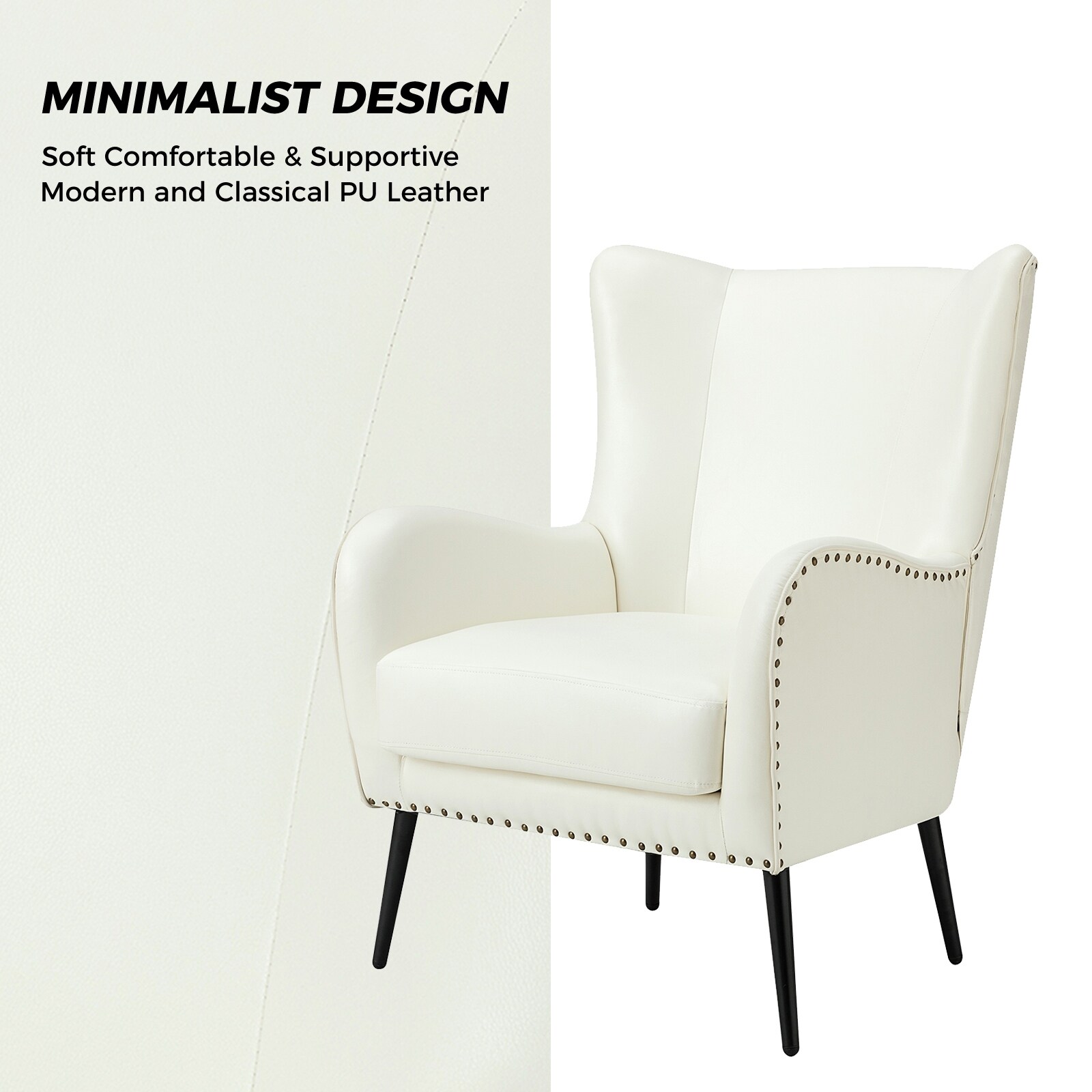HULALA HOME Invidiae Nailhead Trim Upholstered Armchair with Metal Legs by IVORY