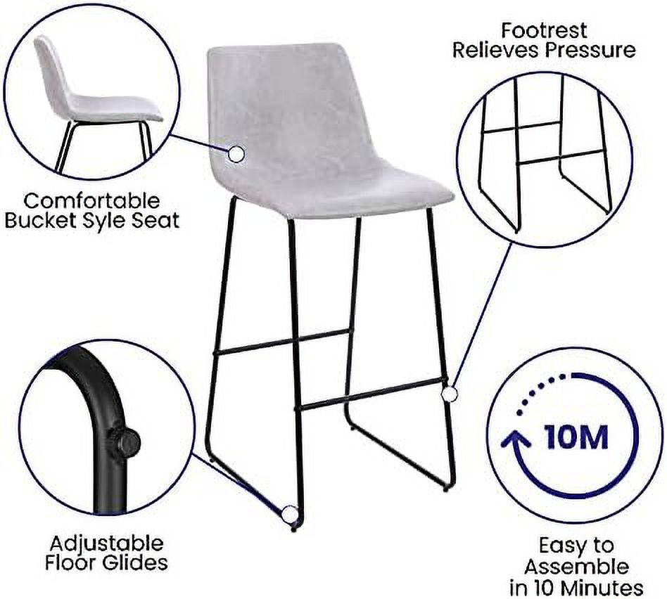 xrboomlife Carrollton 30 inch Faux Leather Height Bucket Seat Stools in Light Brown Set of 2