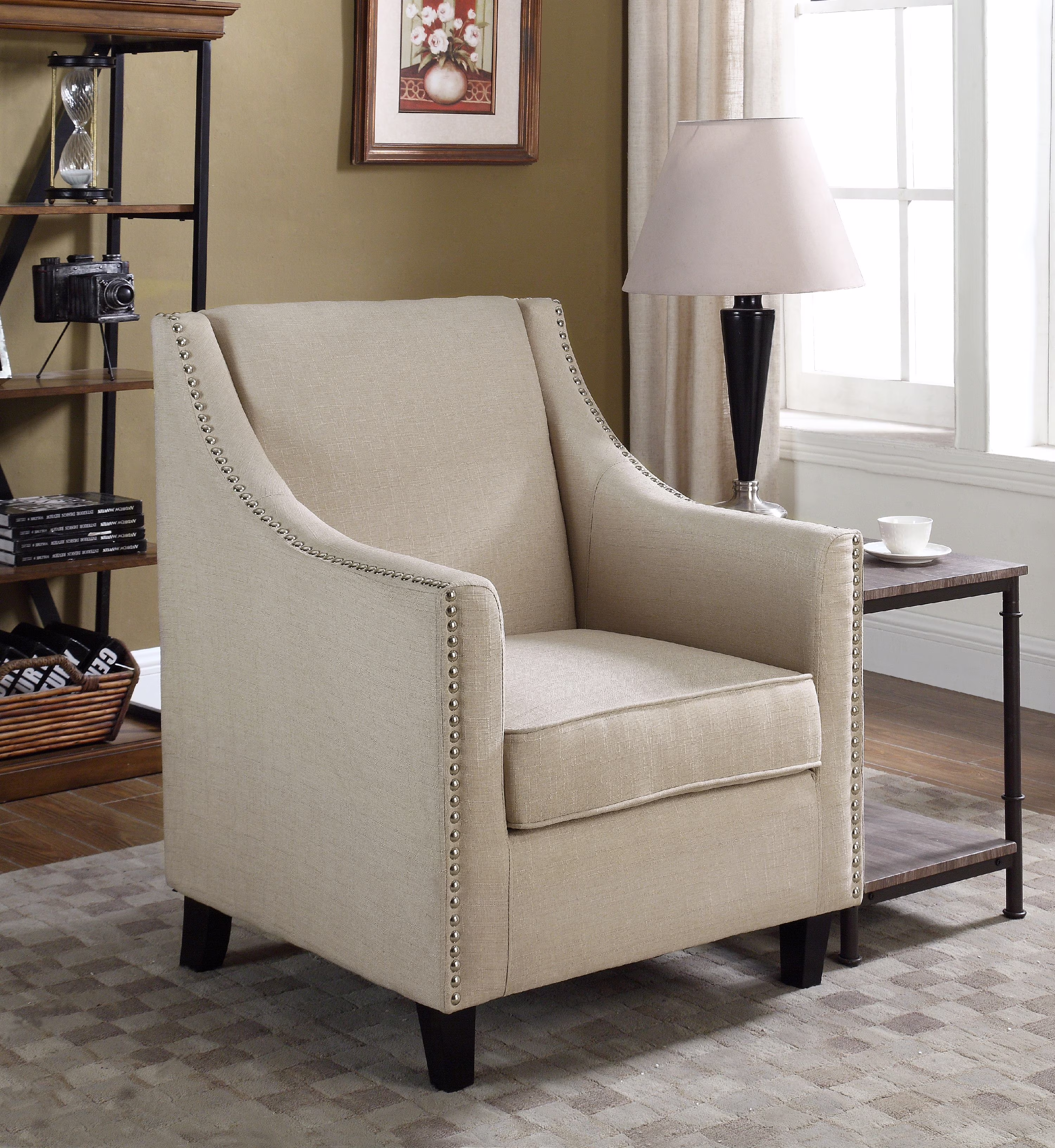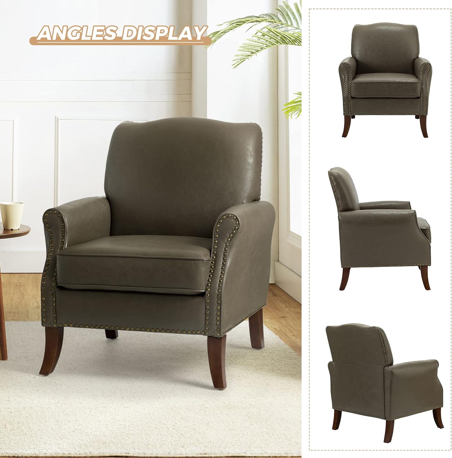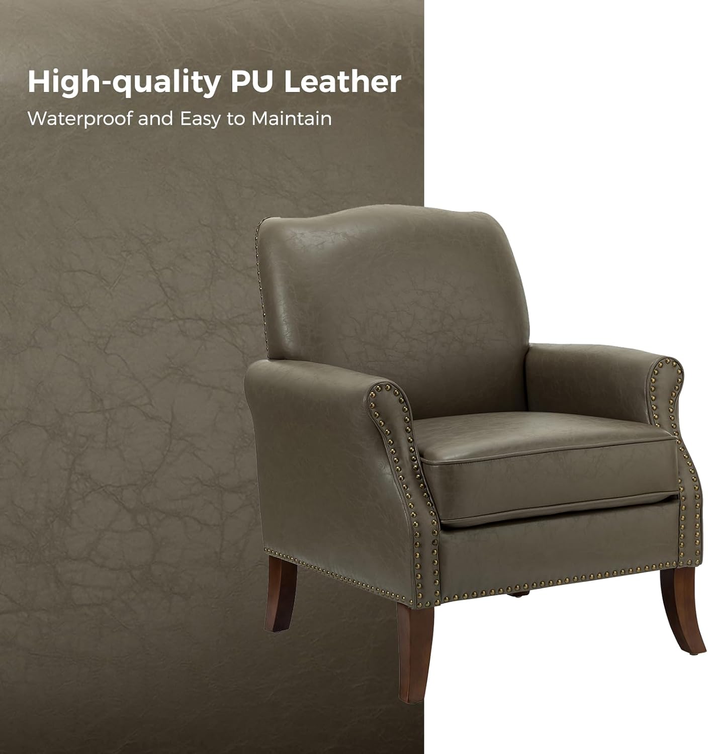 HULALA HOME Anatole Traditional Wingback Upholstered ArmChair with Nailhead Trim by CAMEL