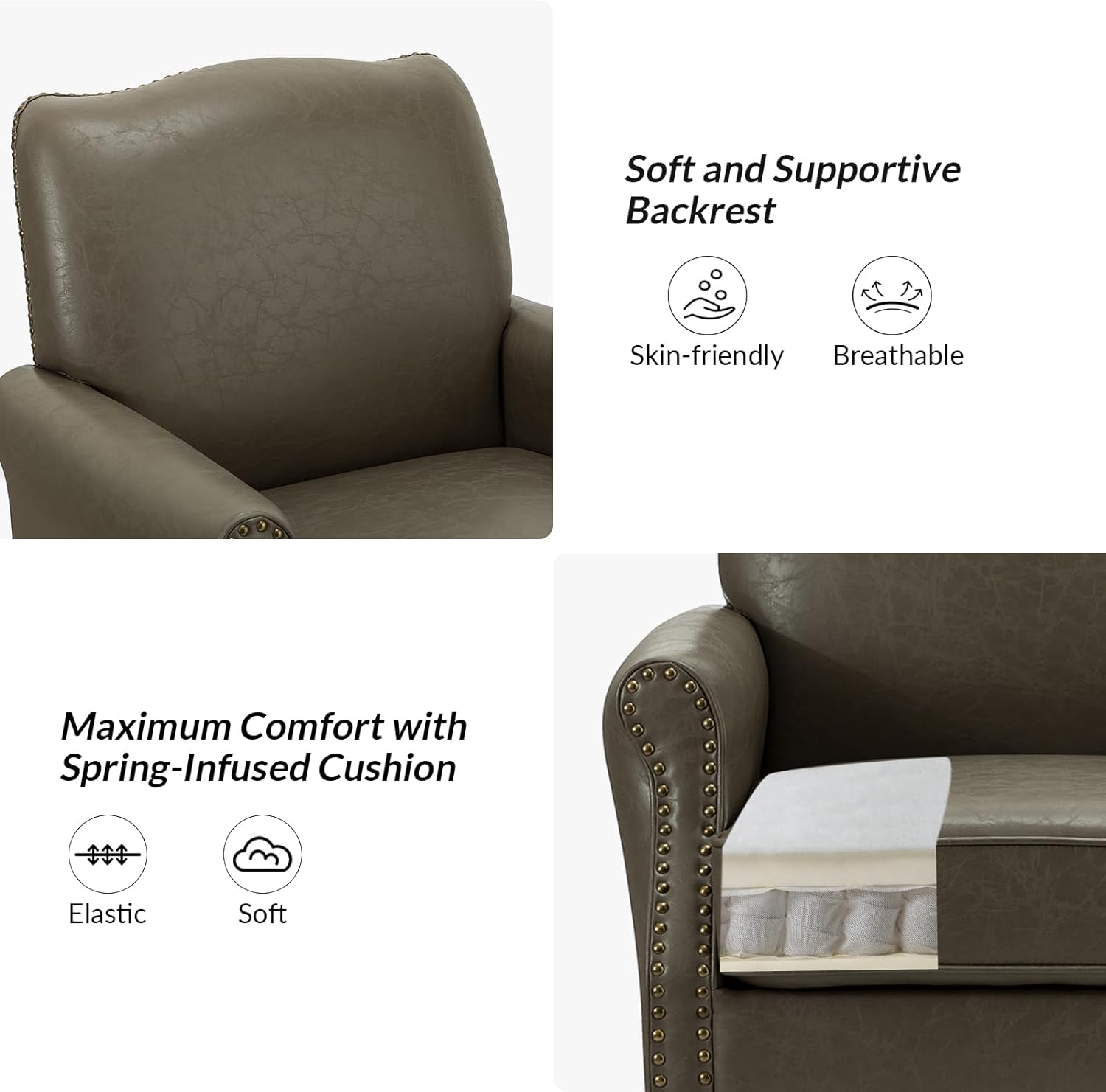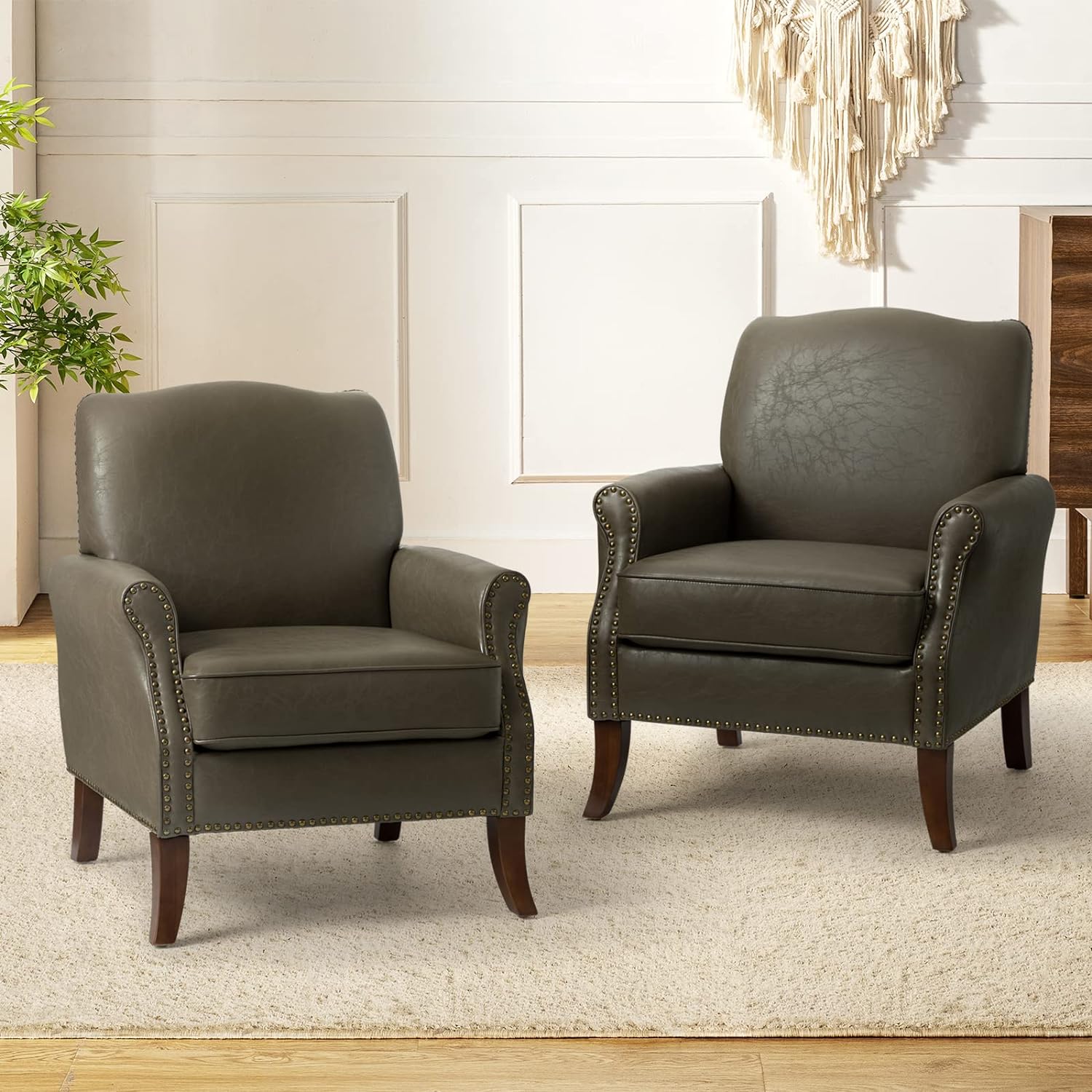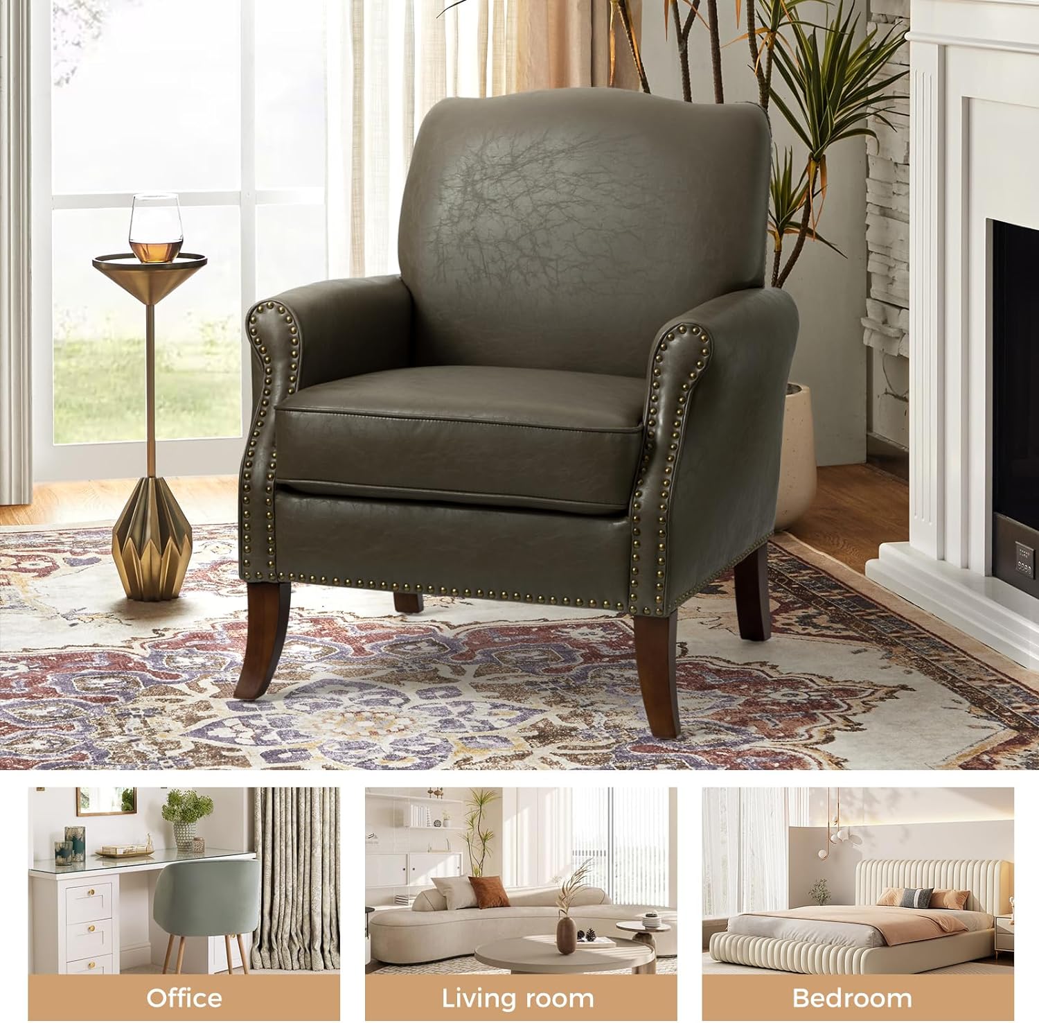 HULALA HOME Anatole Traditional Wingback Upholstered ArmChair with Nailhead Trim by CAMEL