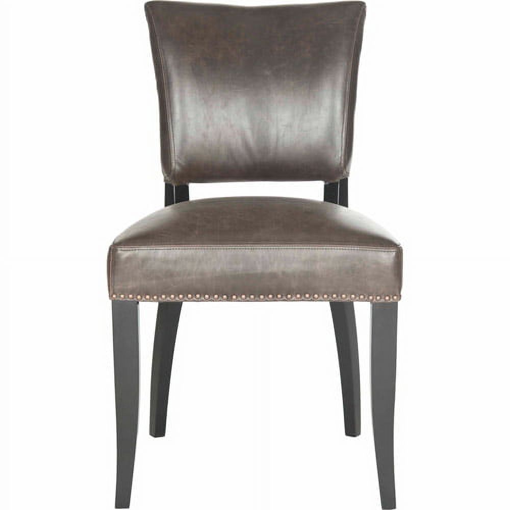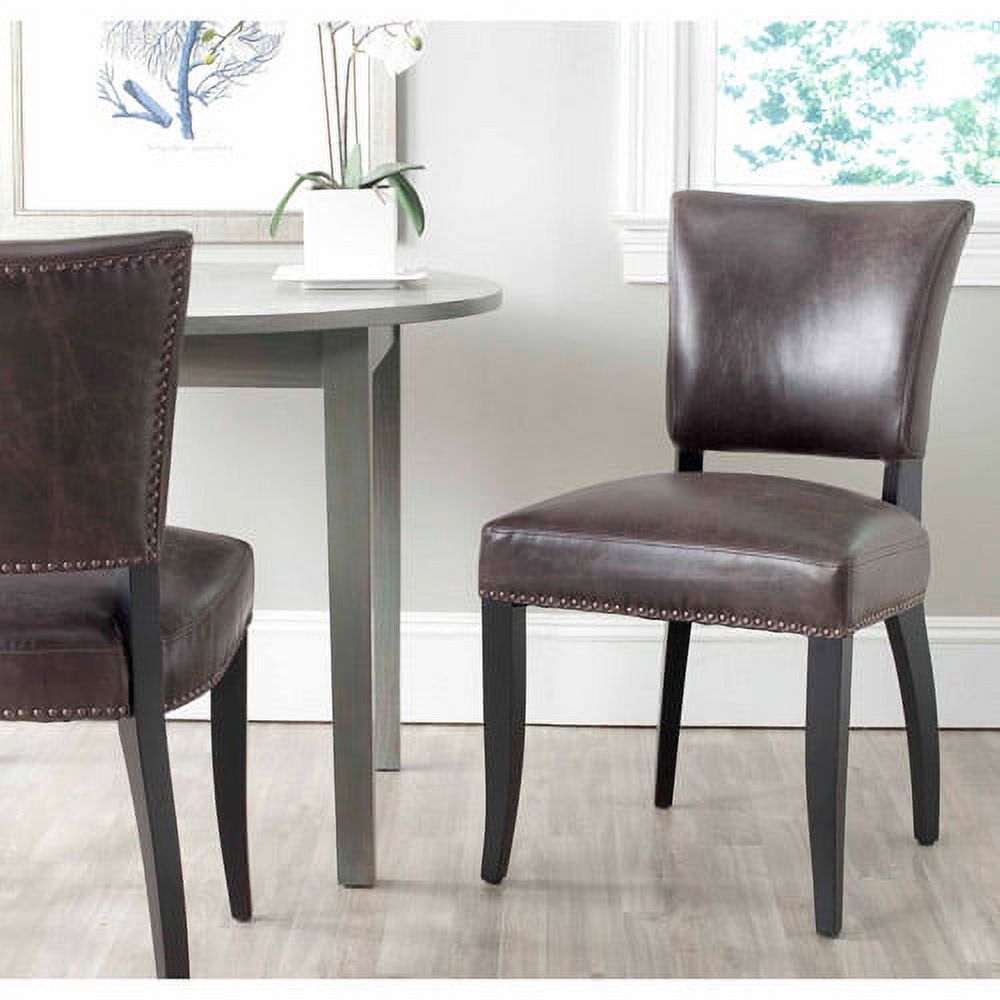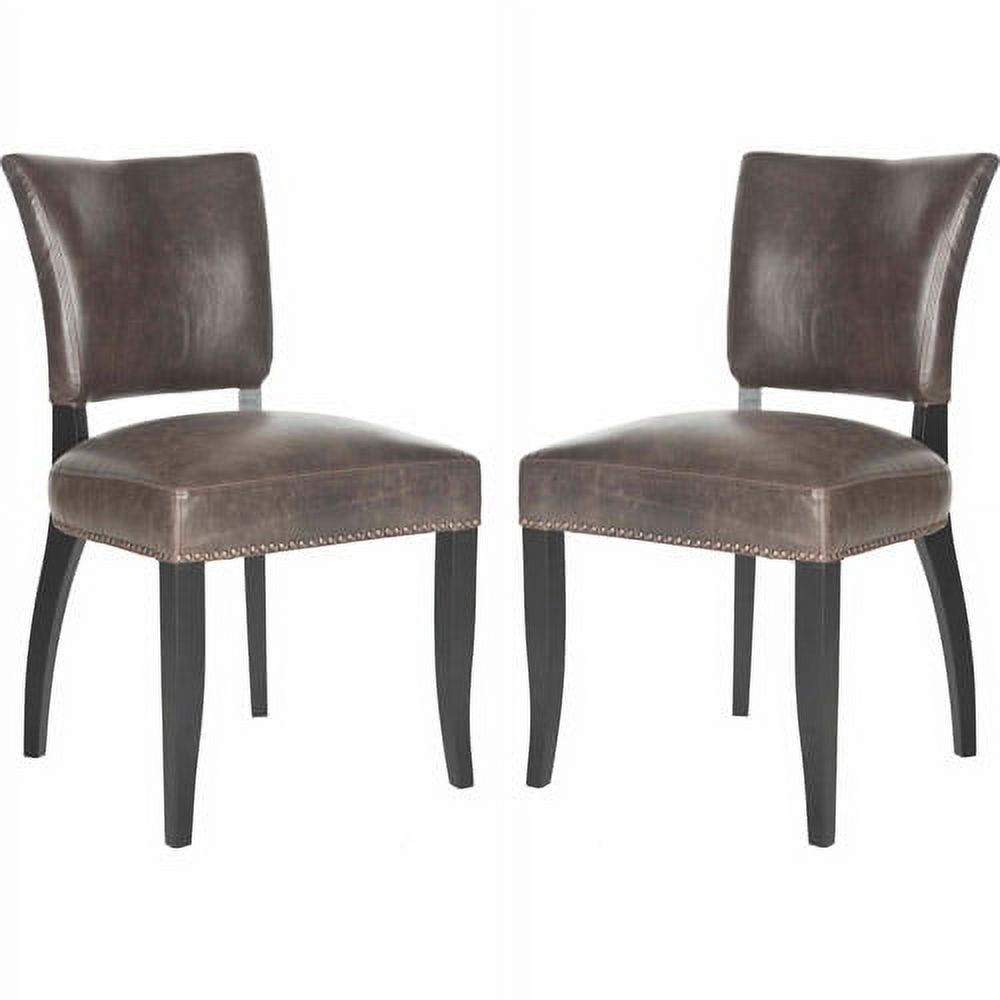 SAFAVIEH Desa 21''H Glam Side Chair w/ Brass Nail Heads, Antique Brown, Set of 2