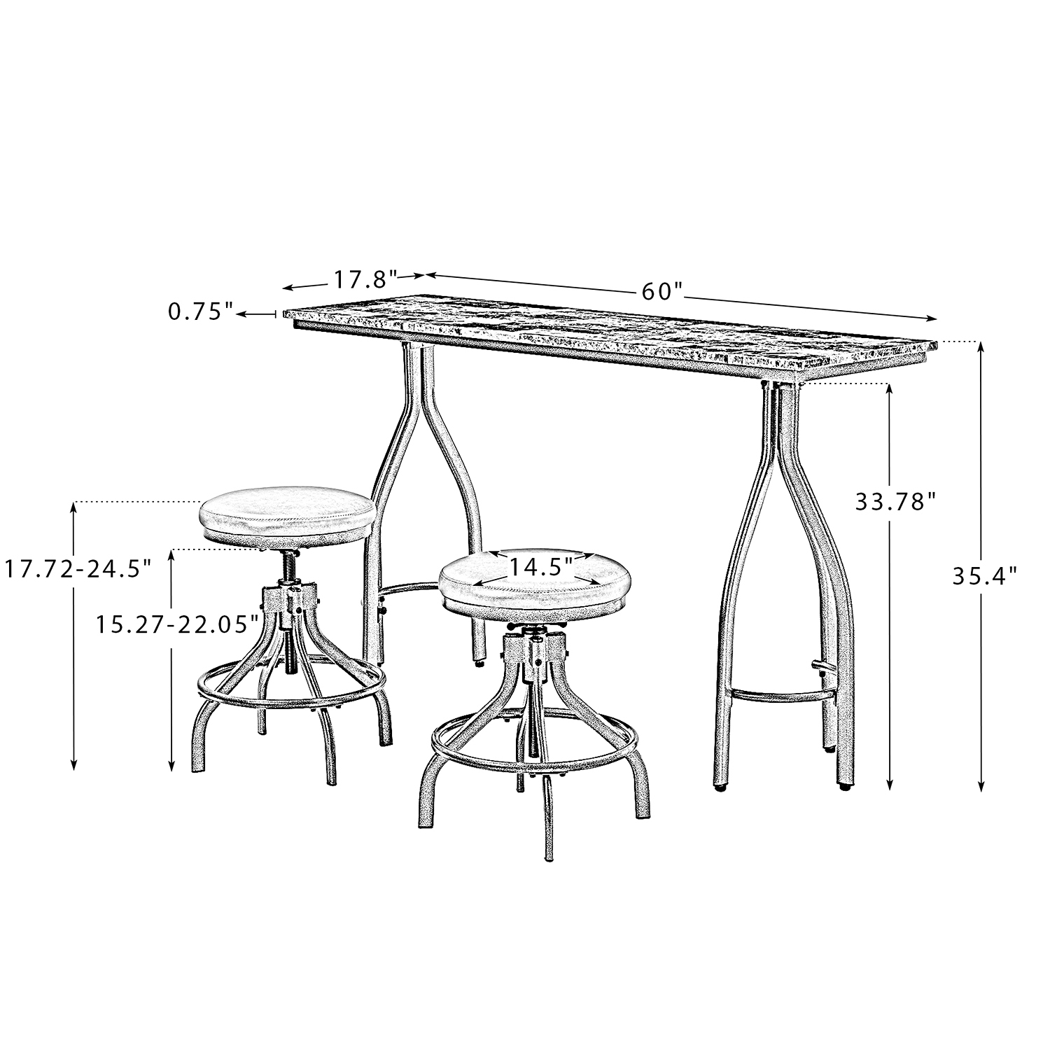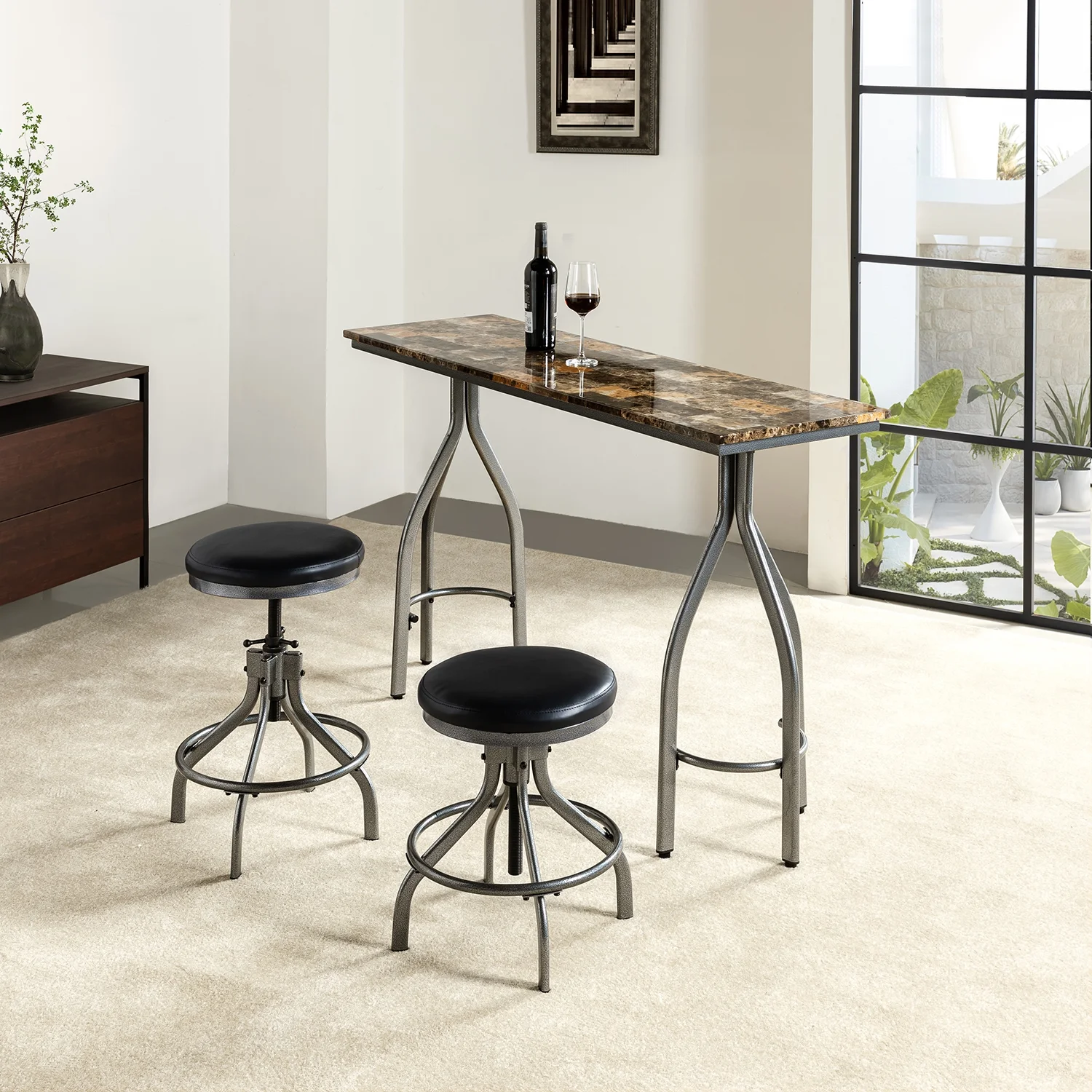 3 Piece Modern Dining Set with 2 Adjustable Height Swivel Stools Kitchen BROWN