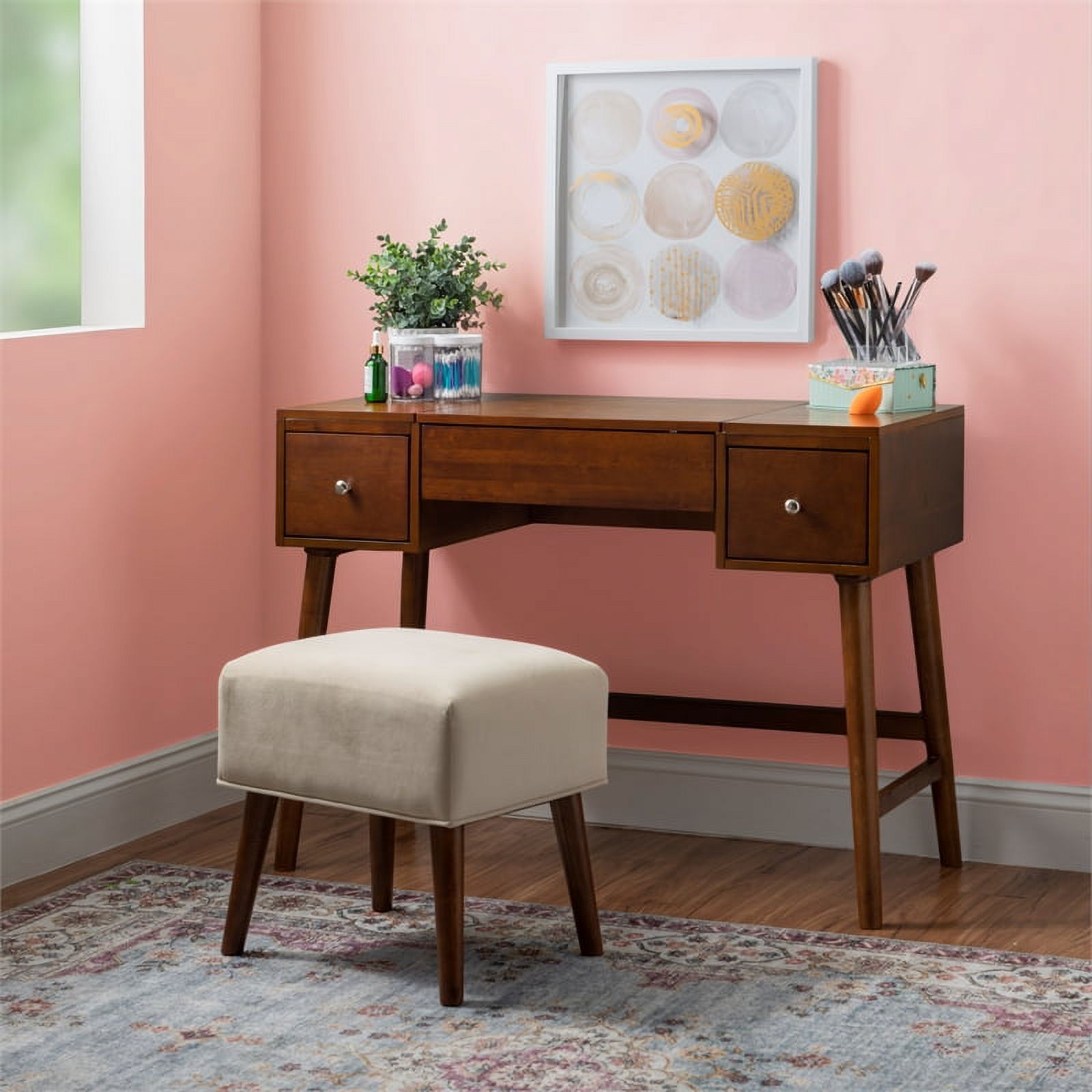 Orora Dec OW-CS90A92-GRAY Antique Suede Fabric Dining Metal Stool, Gray - Set of 2