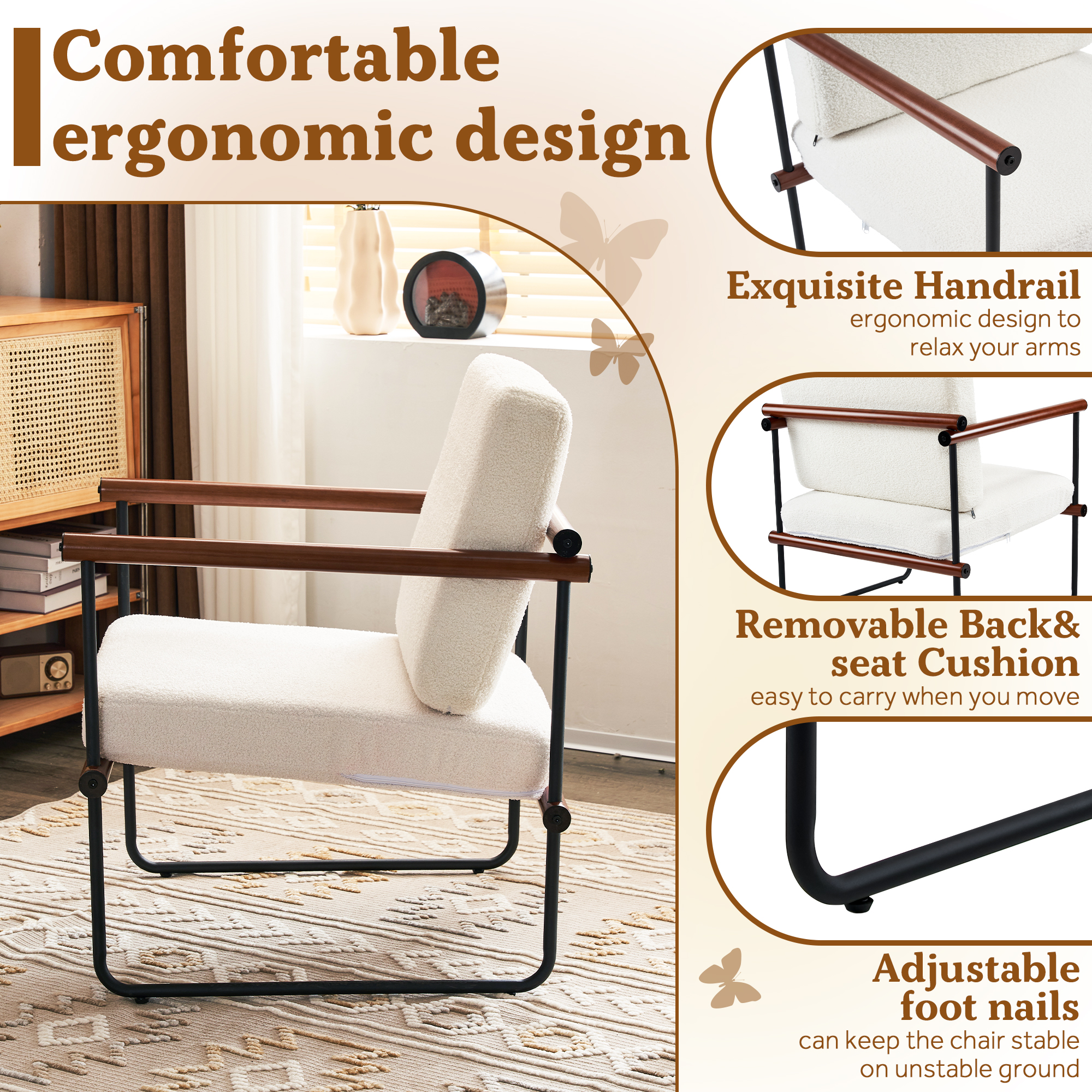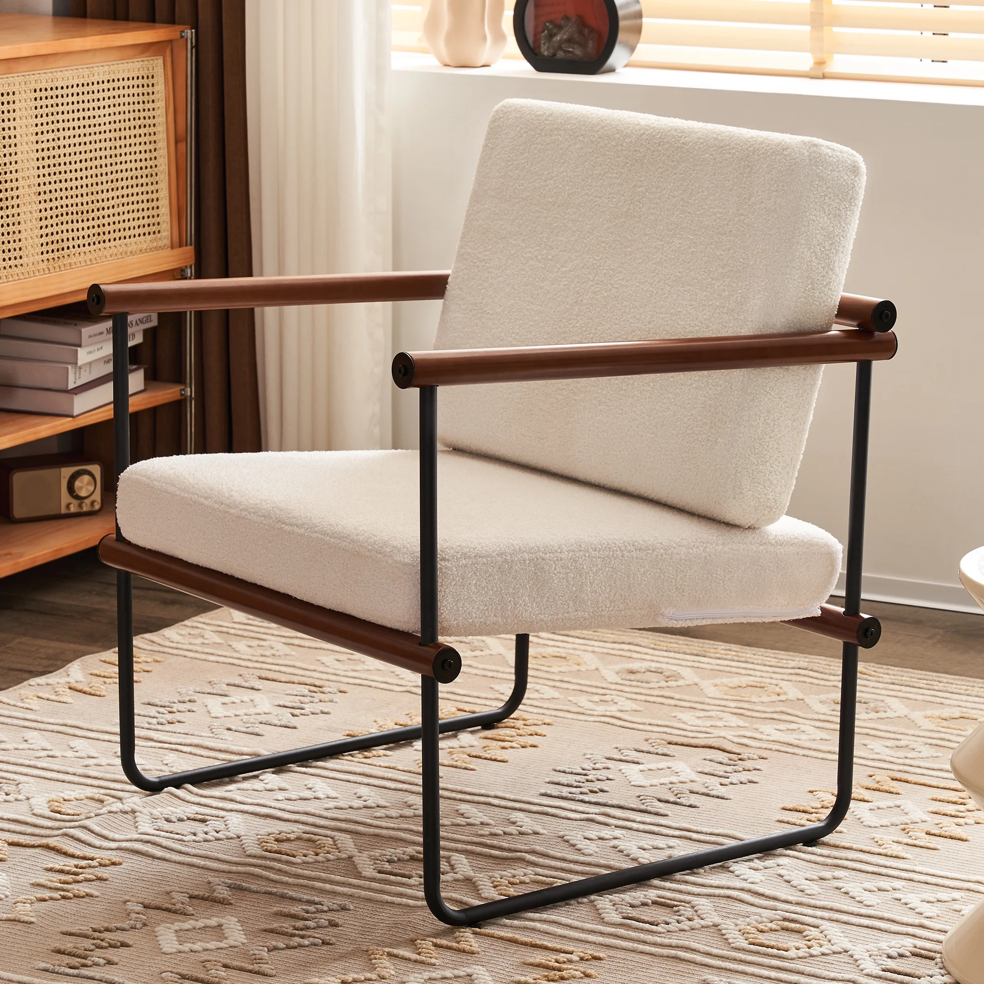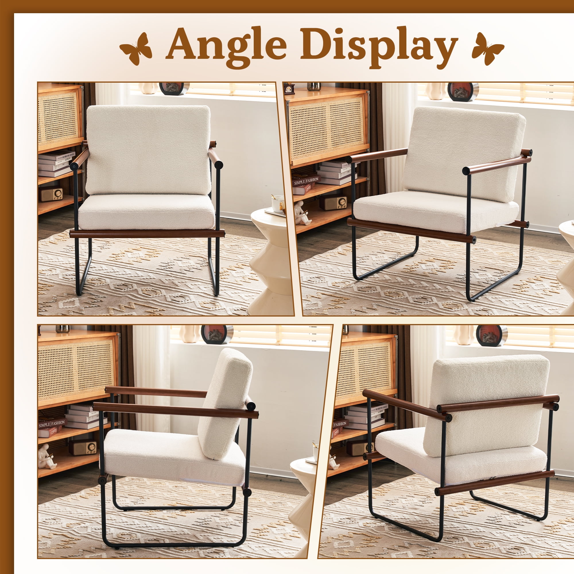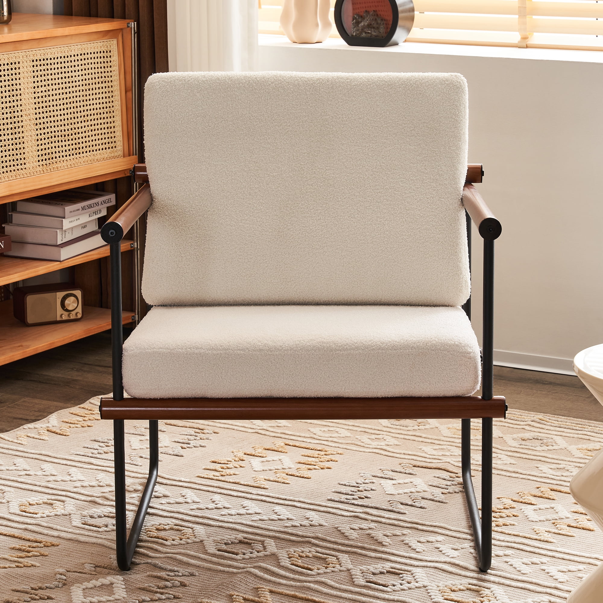 AUSTUFF Boucle Chair Accent Chair Armchair with Metal and Wooden Frame, Walnut