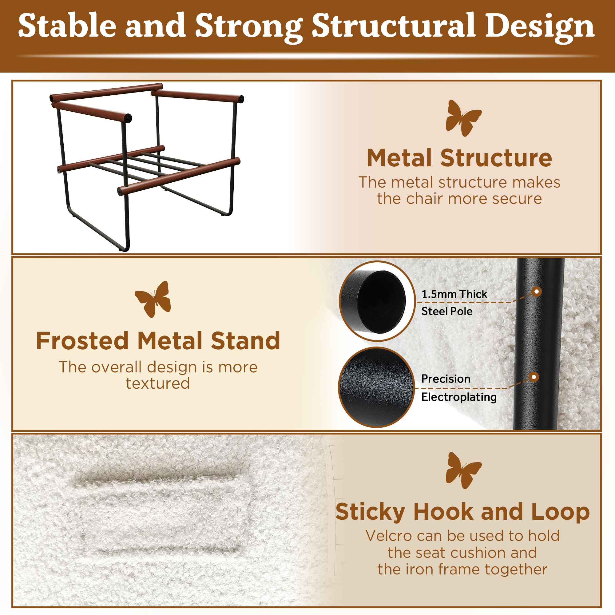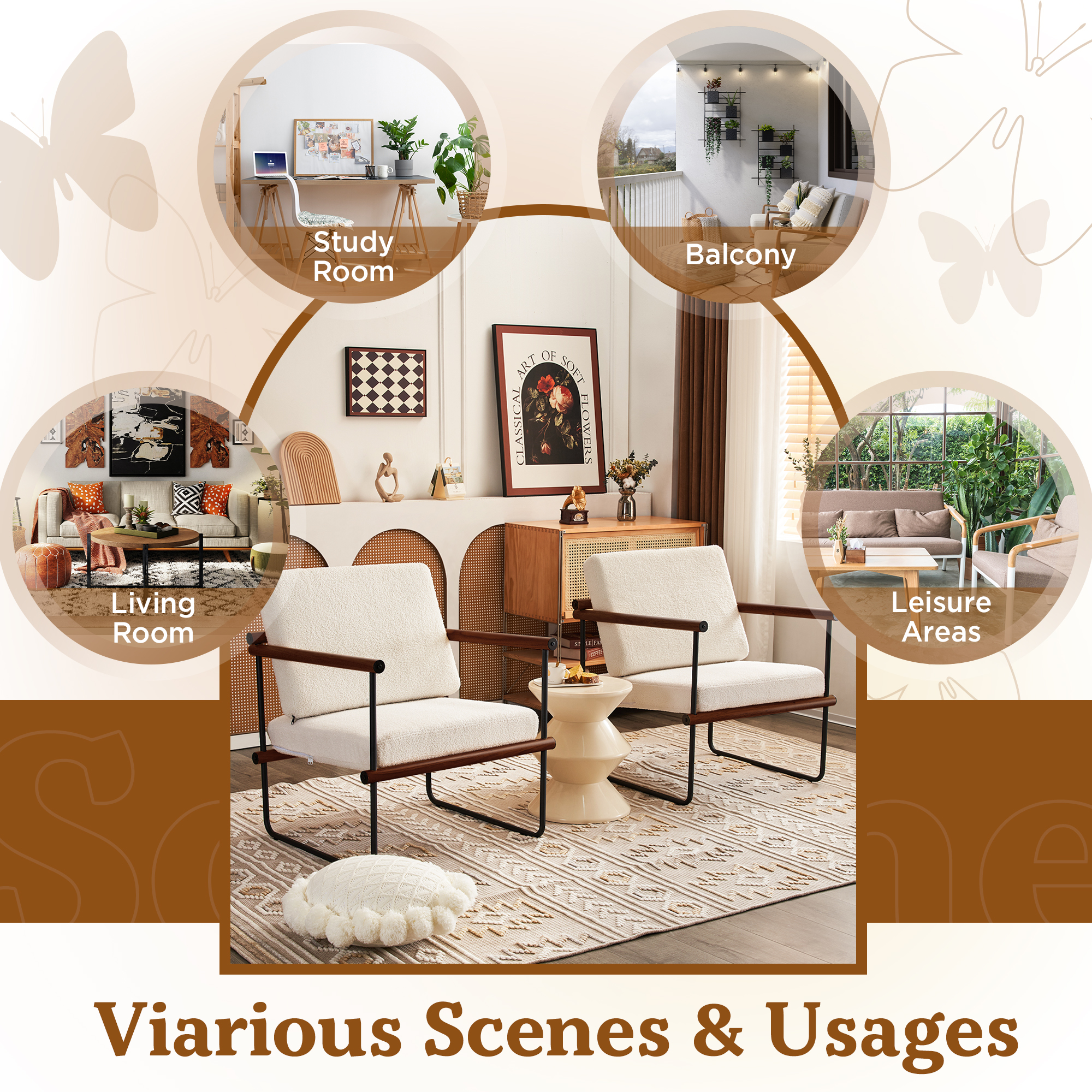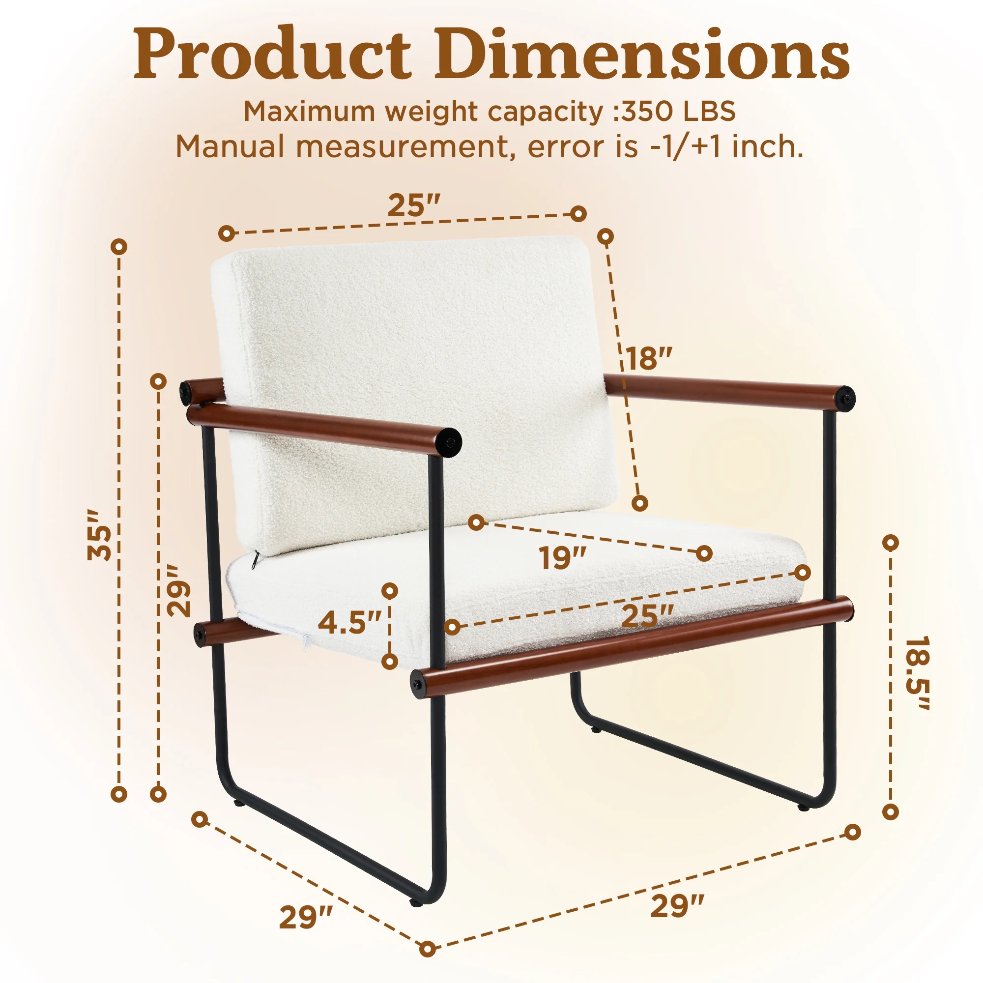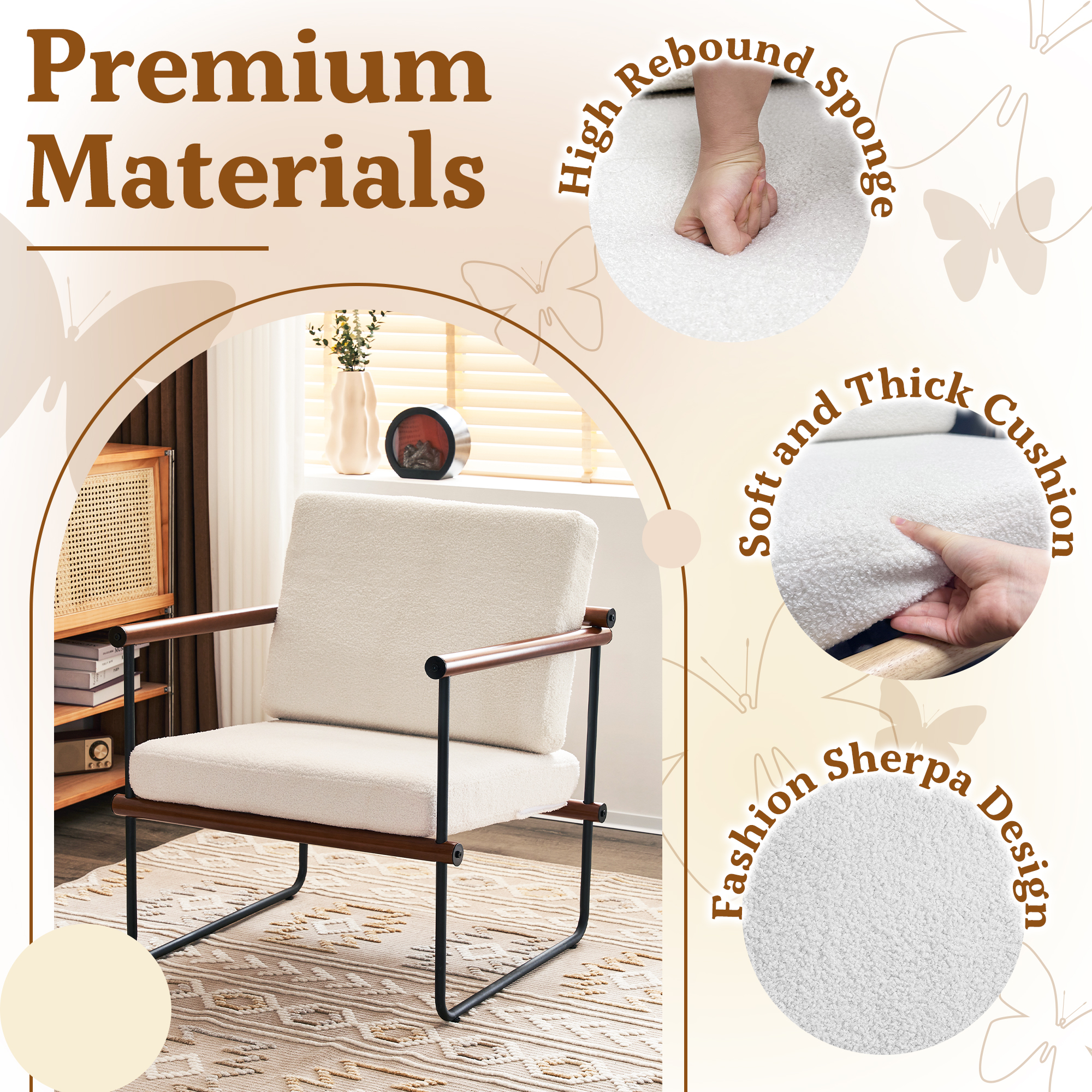 AUSTUFF Boucle Chair Accent Chair Armchair with Metal and Wooden Frame, Walnut