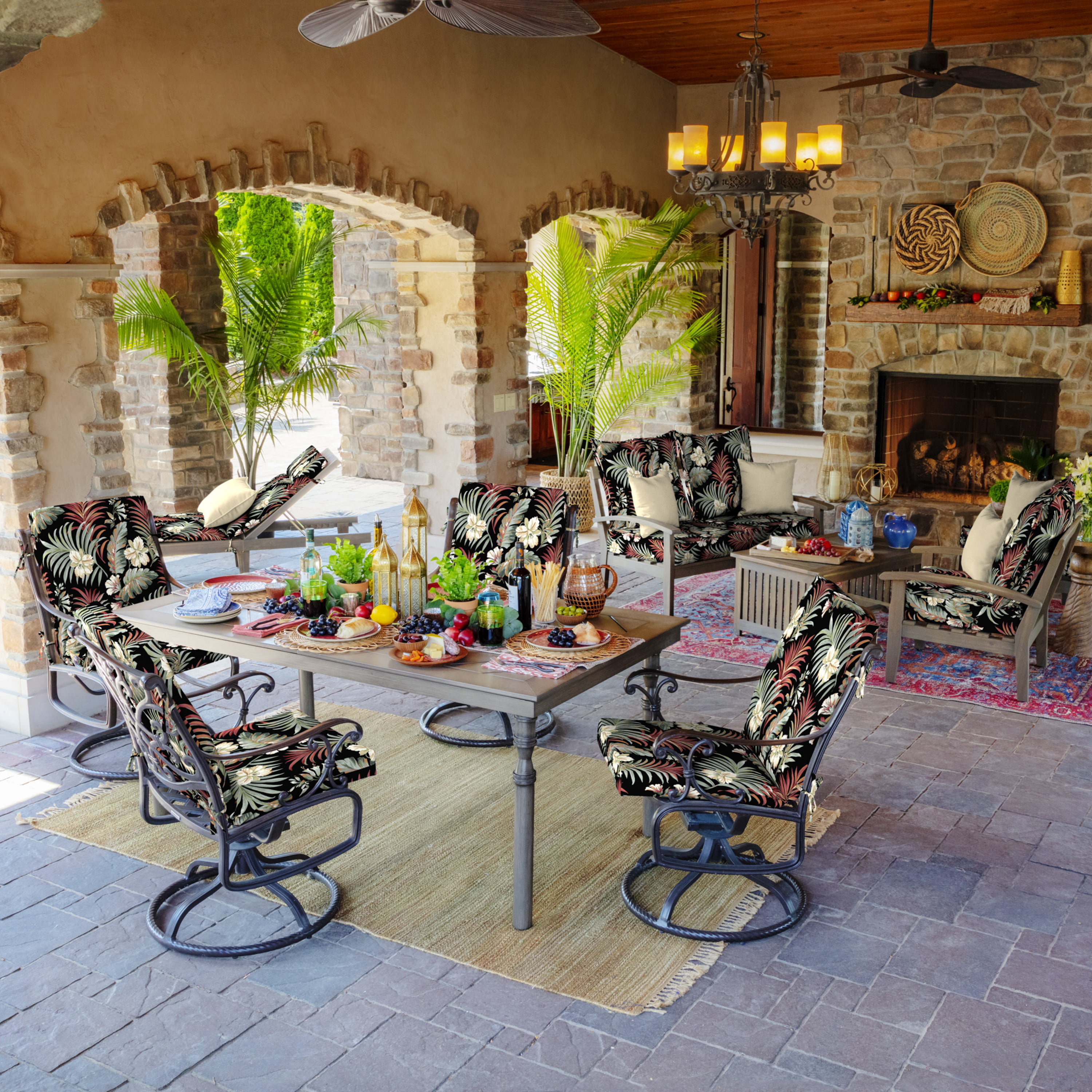 Arden Selections Outdoor Chaise Lounge Cushion 72 x 21, Simone Black Tropical