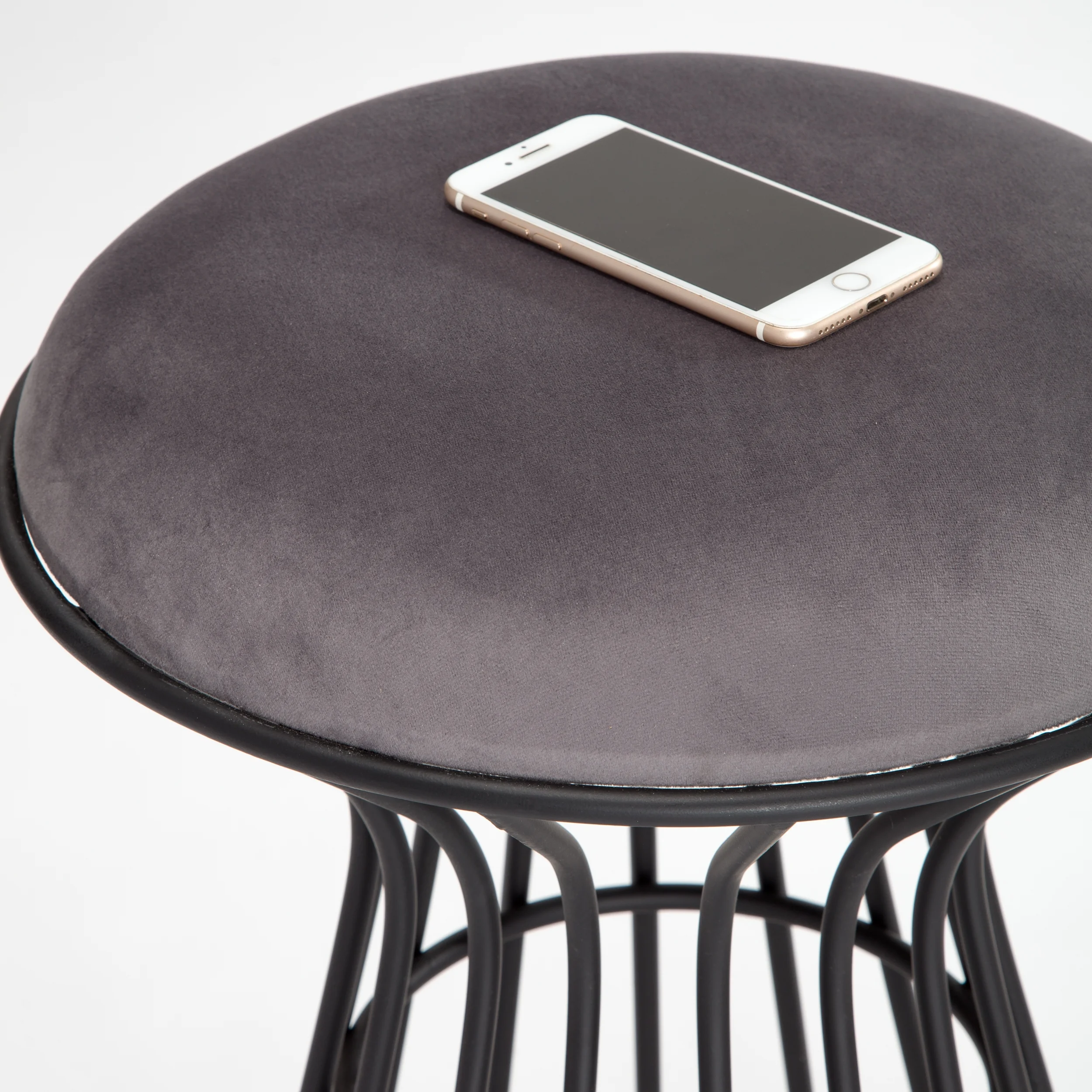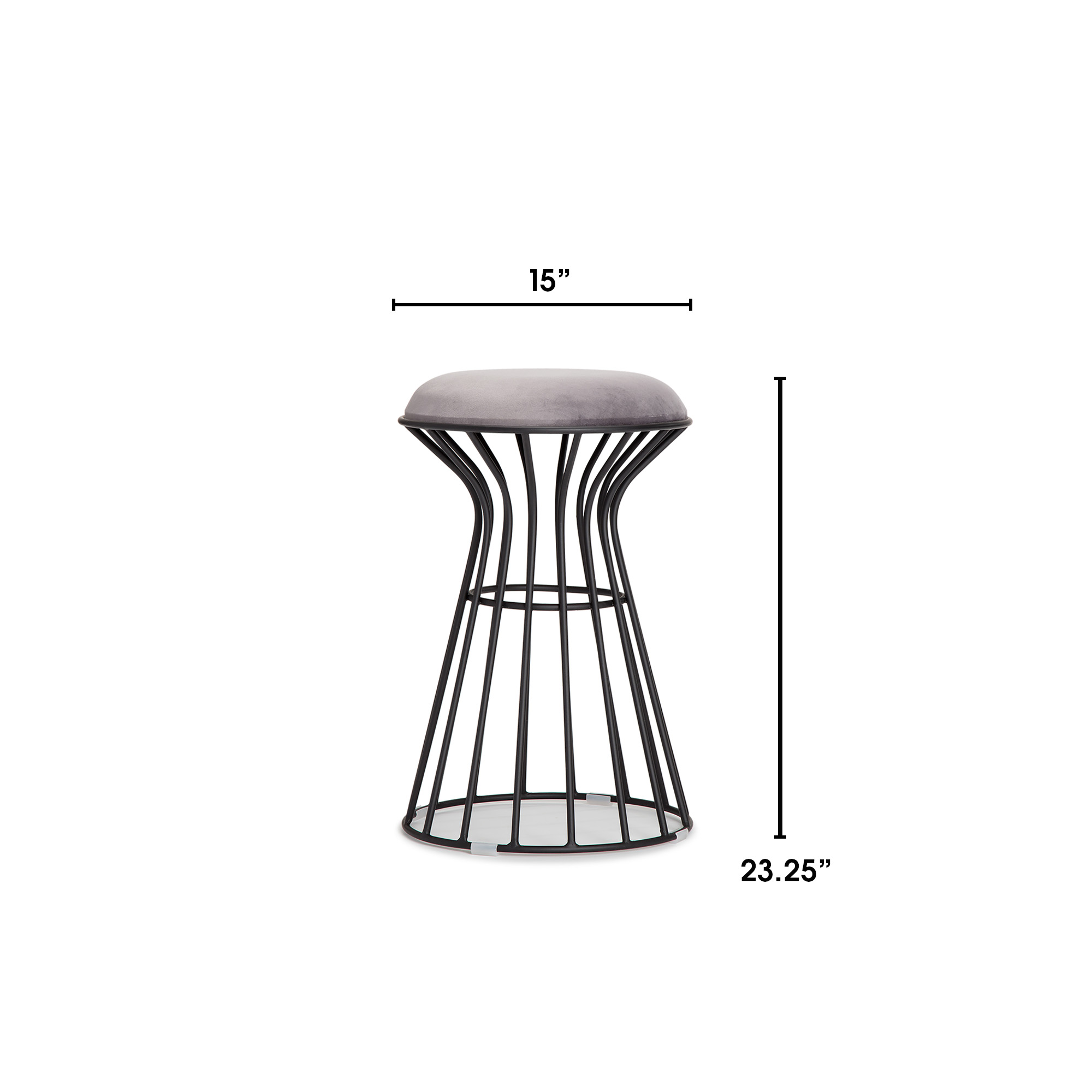 Adore Decor Lulu Velvet Upholstered Vanity Stool Fully Assembled Black and Gray