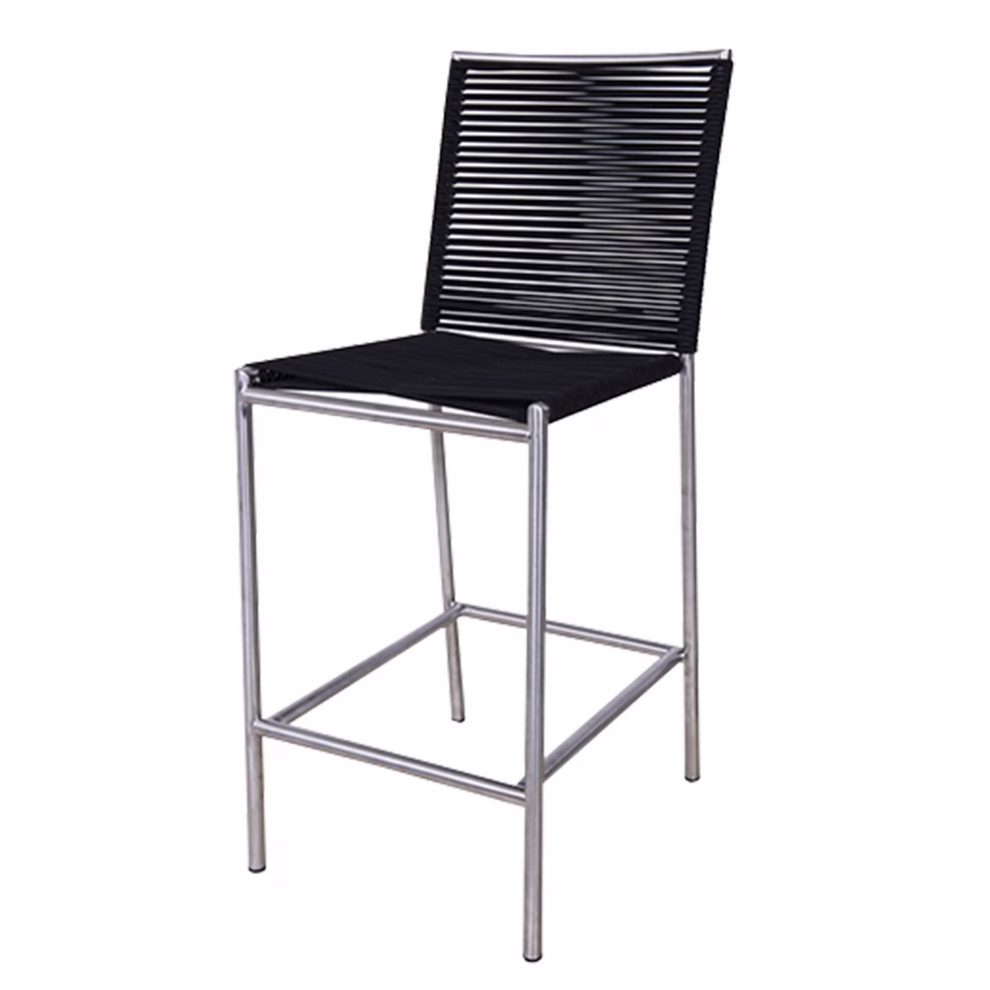 Benjara 40 in. Outdoor Counter Height Stool with Bungee Cord Seat, Gray, Steel & Black