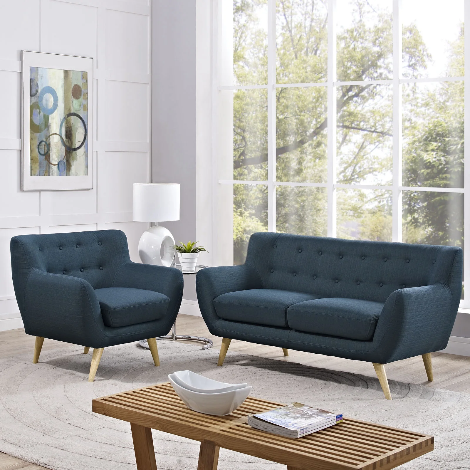 Roundhill Furniture Enda Oversized Living Room Pillow Back Cuddler Arm Chair with Ottoman, Image Navy