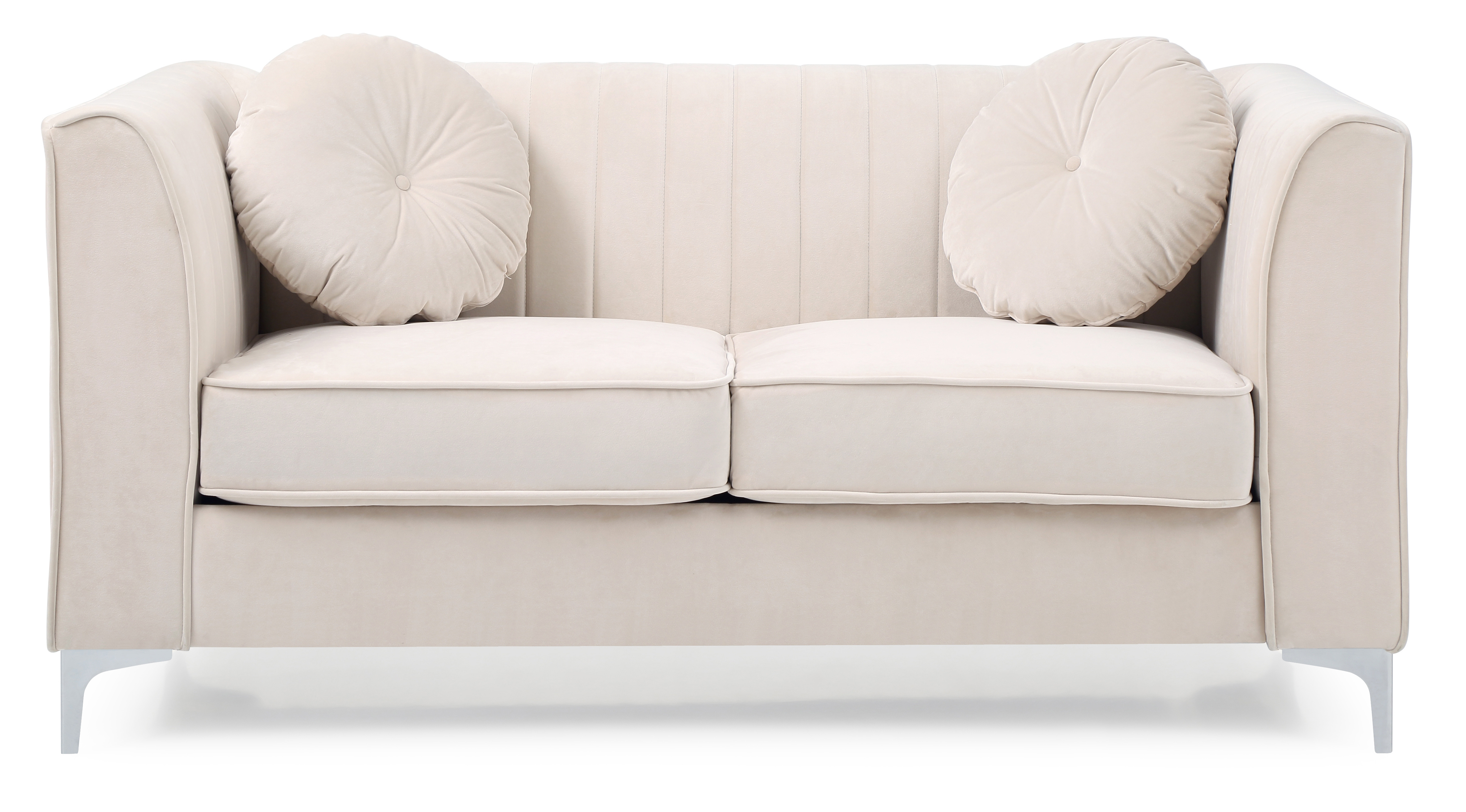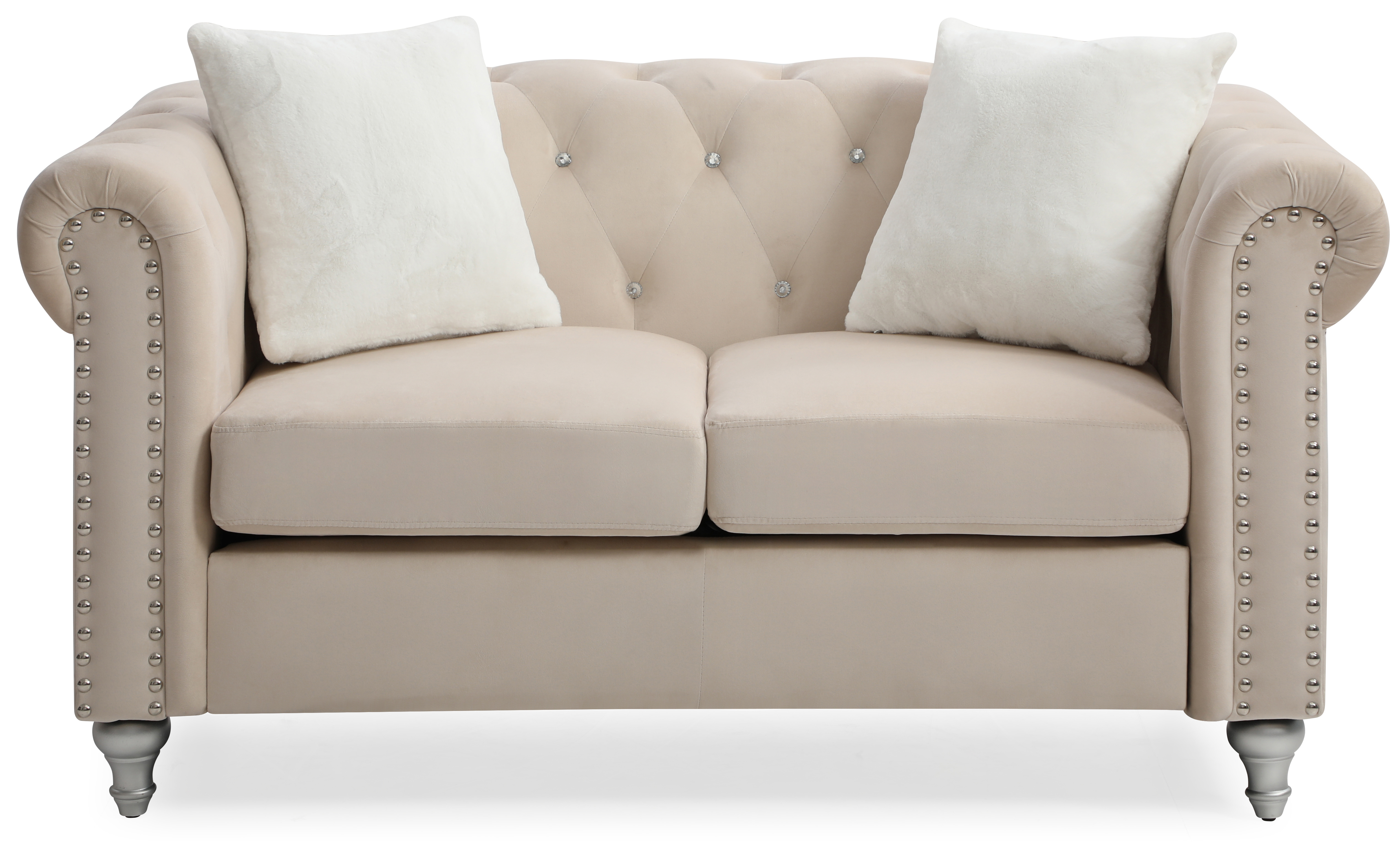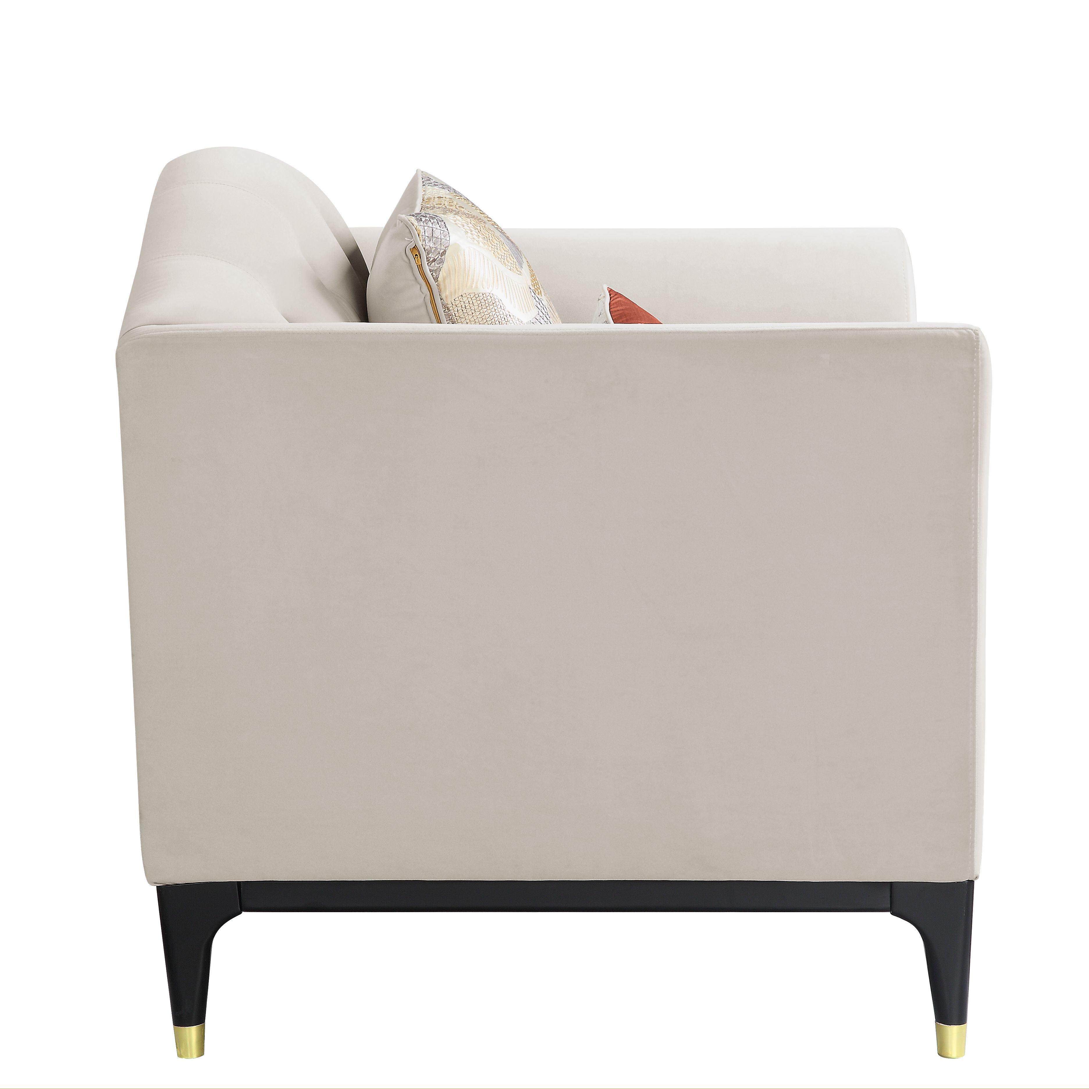 42 x 80 x 42 in. Velvet Antique Champagne Upholstery Poly-Resin Loveseat with 4 Pillows