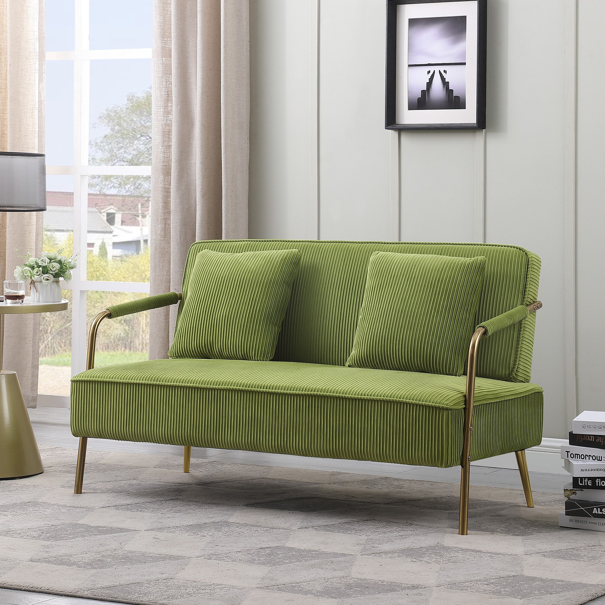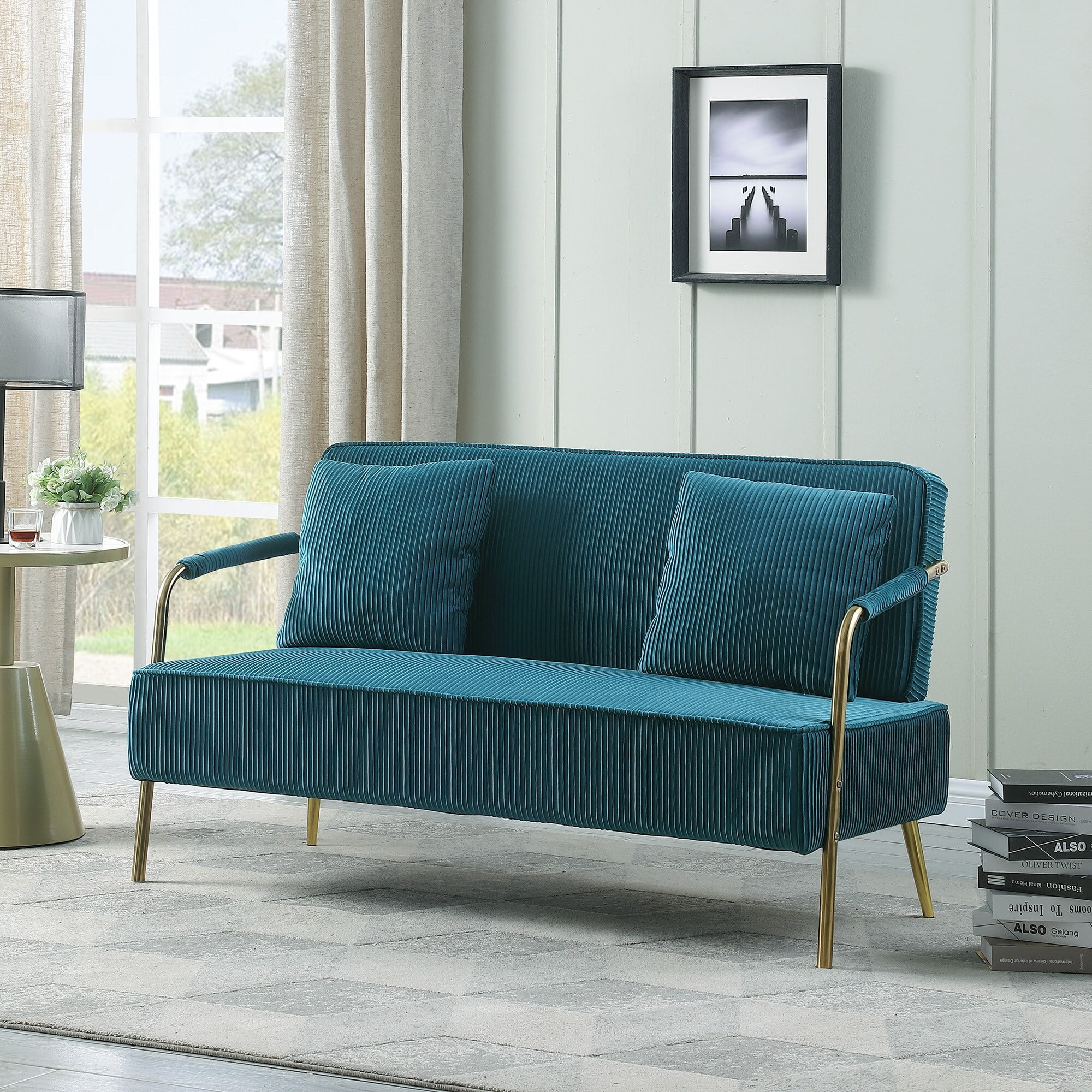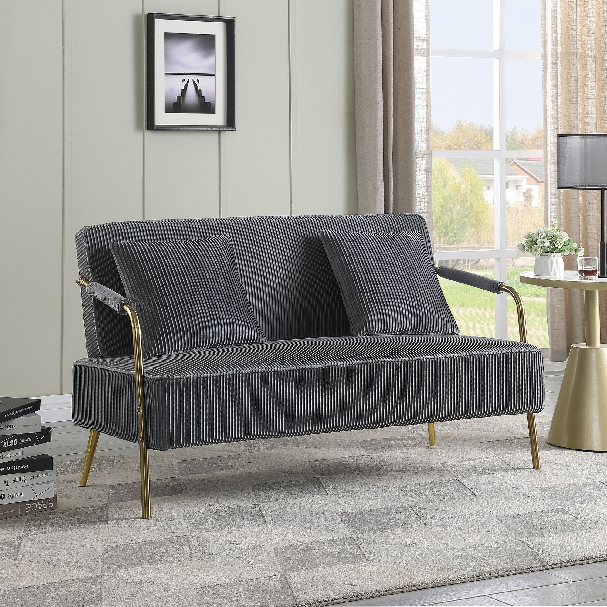 Unbranded 56" Width Modern Upholstered Pleated Velvet Loveseat Sofa - 56"Wx28"Dx32.7"H Grey