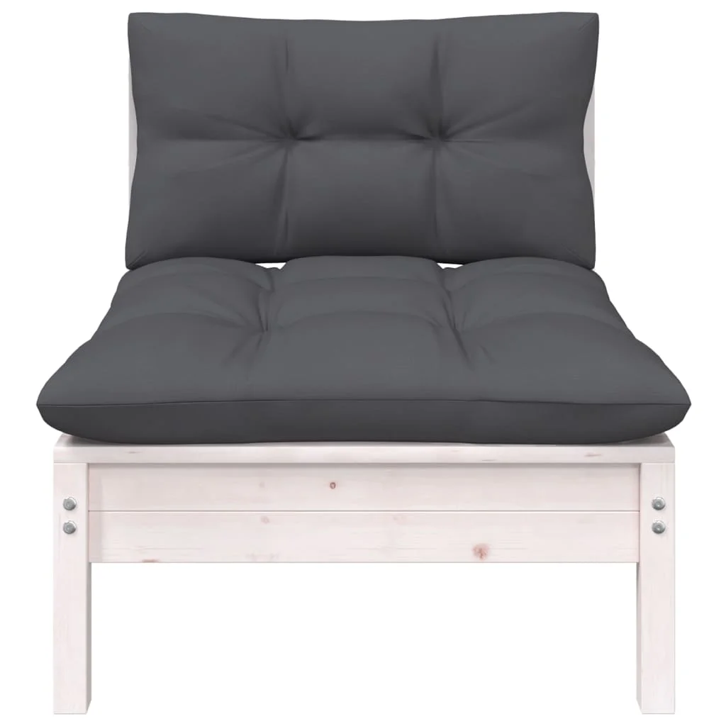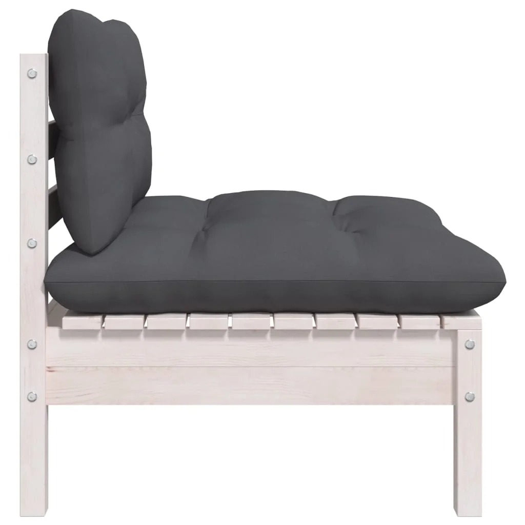 Gecheer Solid Pinewood Patio Middle Sofa with Cushions White, Sturdy and Flexible