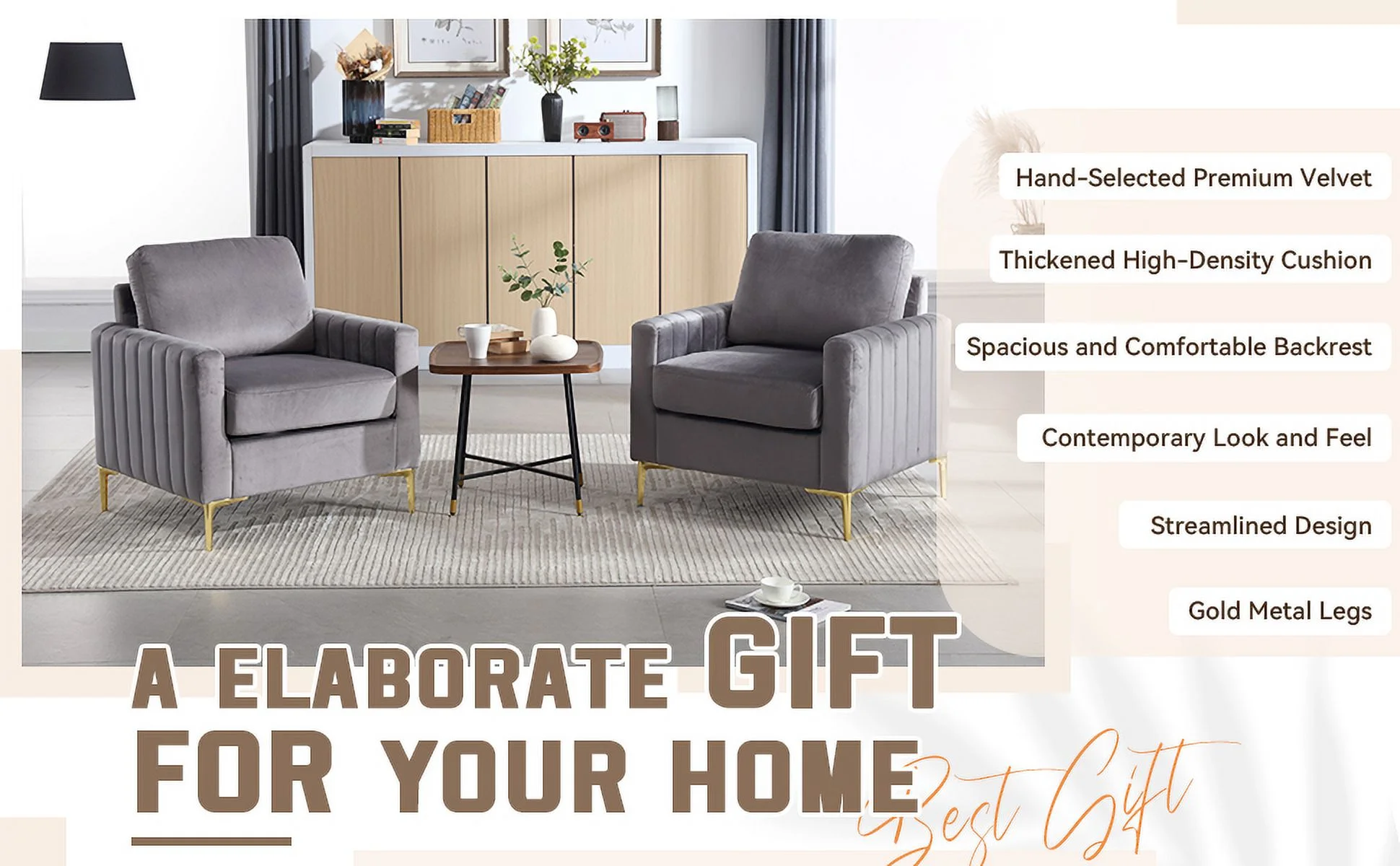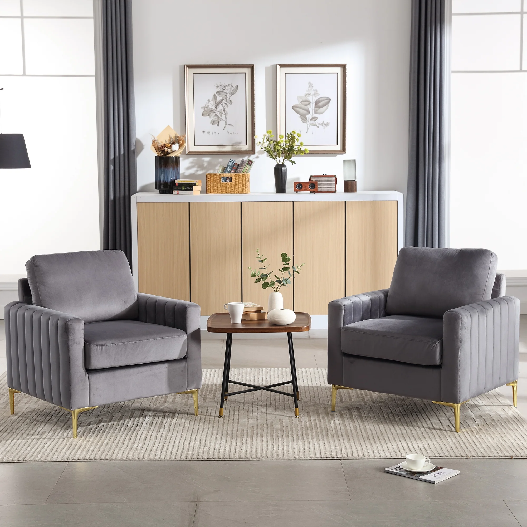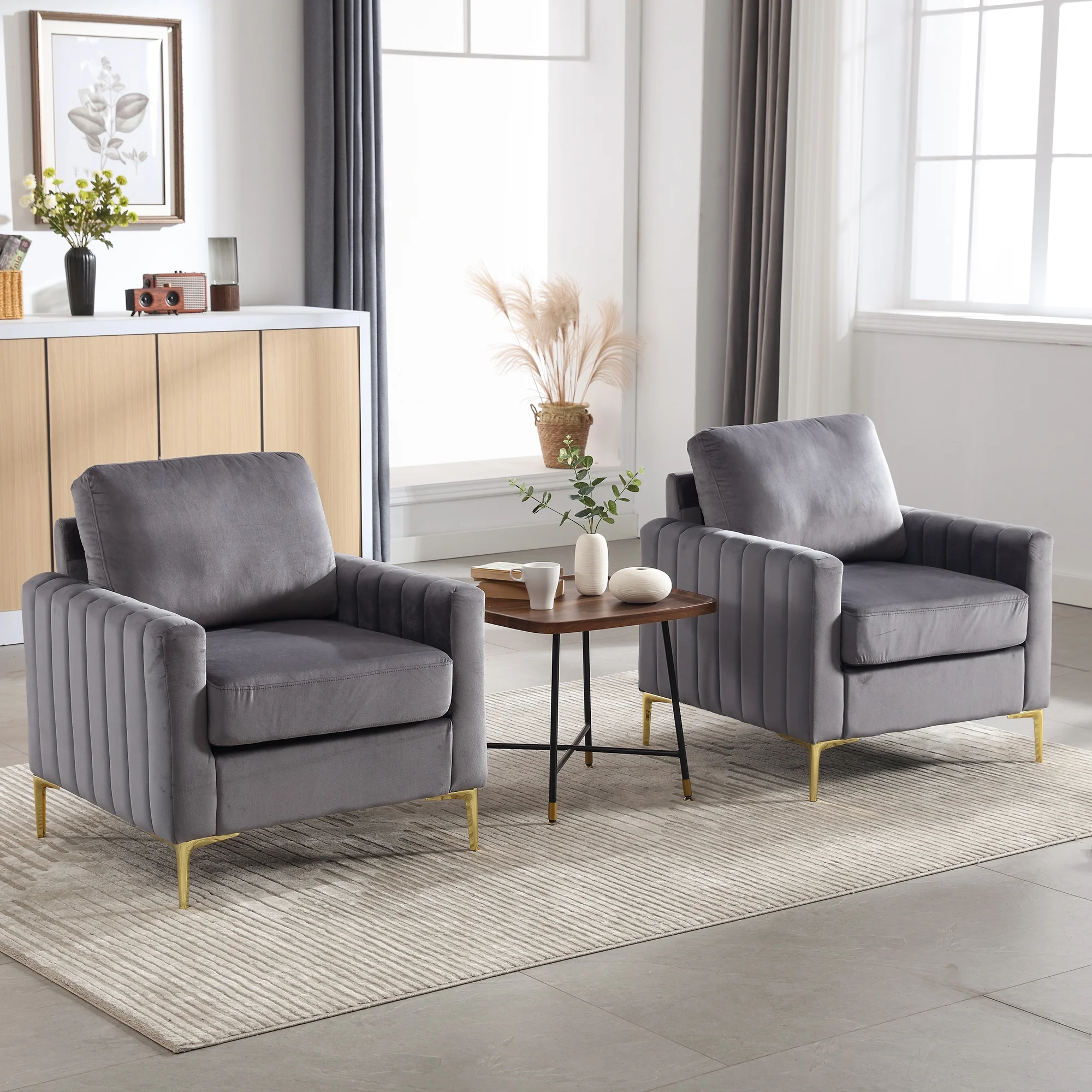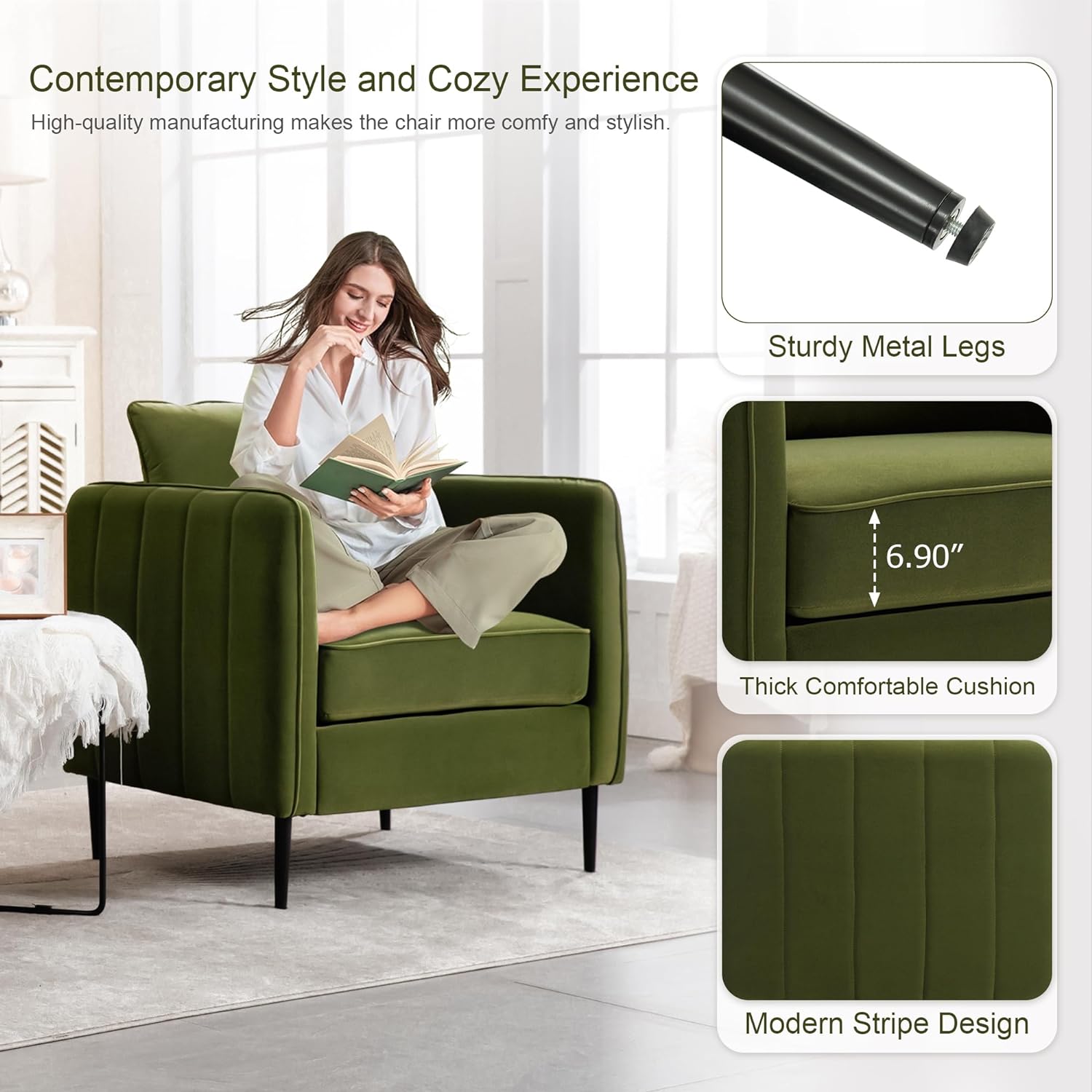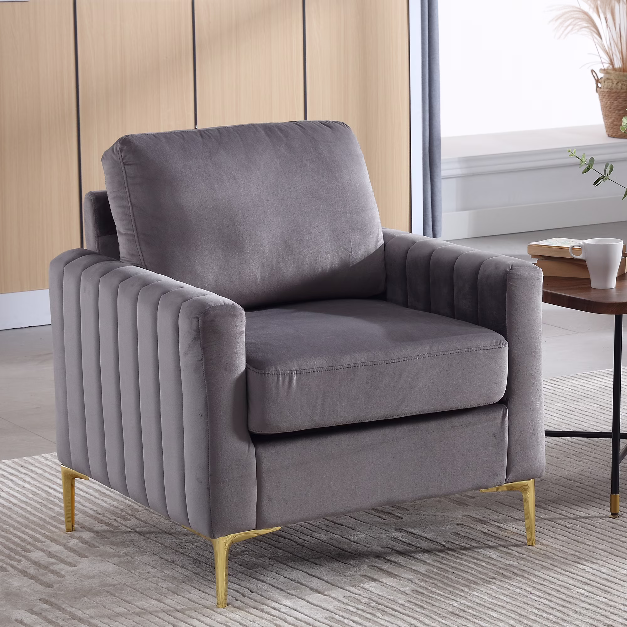 Geoffey Velvet Club Chair or Sofa-Channel Tufted-Nailhead Trim-Metal Tip Legs-By Nicole Miller