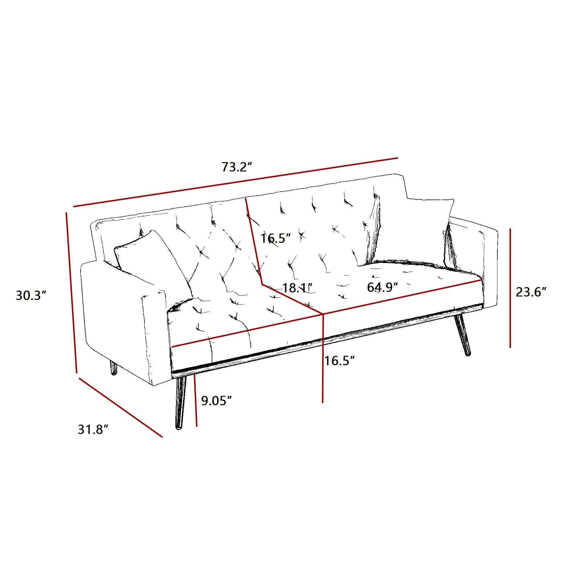 Foldable Fabric Folding Futon Sofa Bed, Sofa Bed for compact living spaces. Dimensions L31.8"*W73.2"*H30.3"