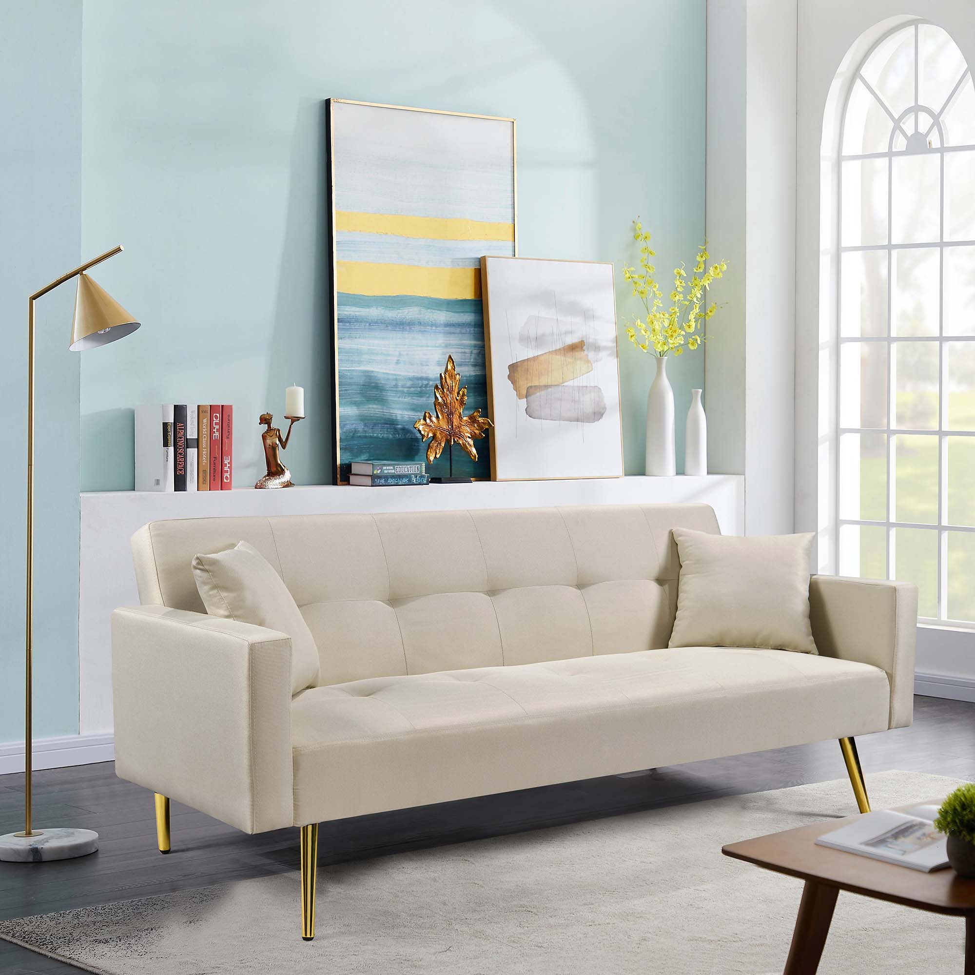 Supfirm Cream White Convertible Folding Futon Sofa Bed , Sleeper Sofa Couch for Compact Living Space.