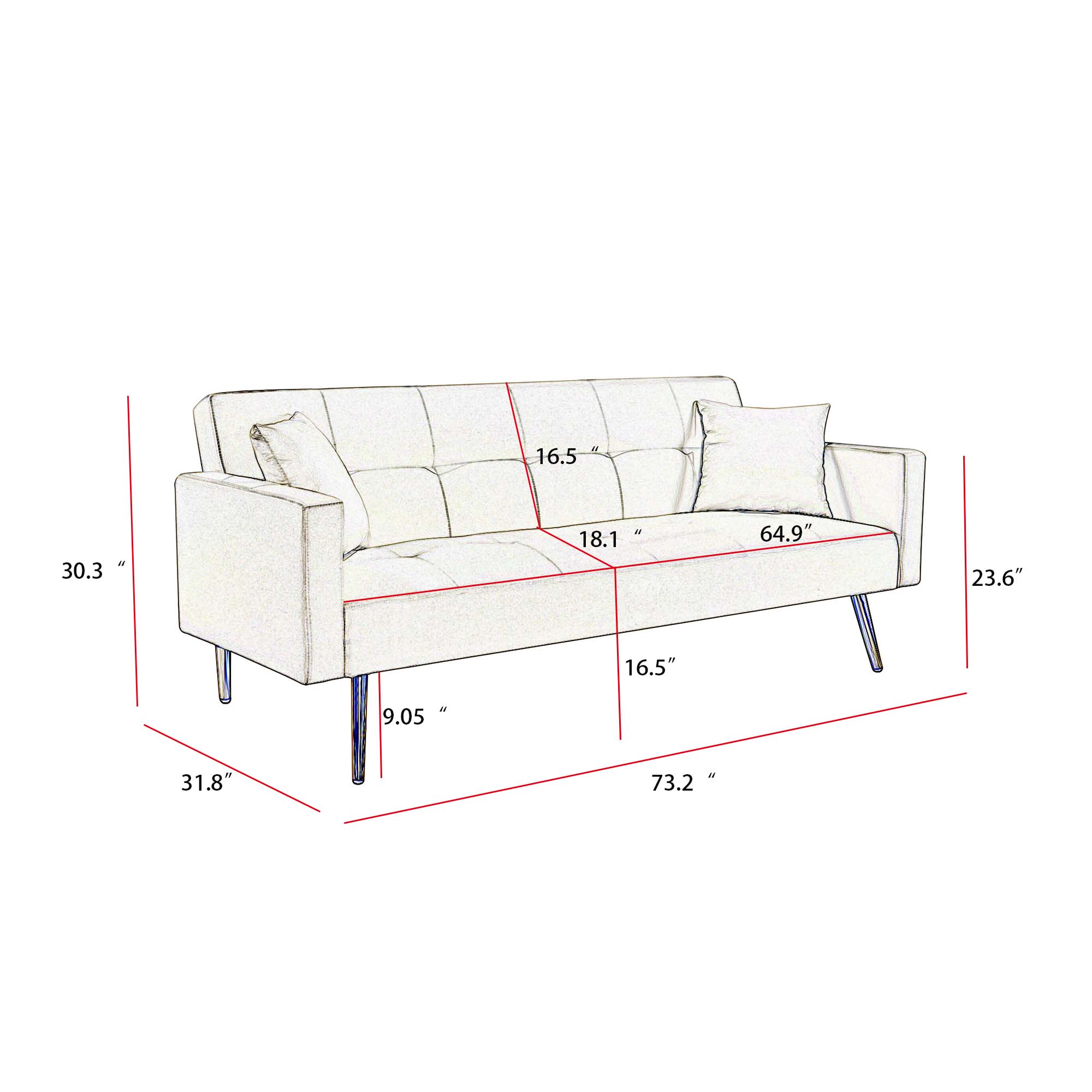 Dcenta OFF WHITE Convertible Fabric Folding Futon Sofa Bed , Sleeper Sofa Couch for Compact Living Space.