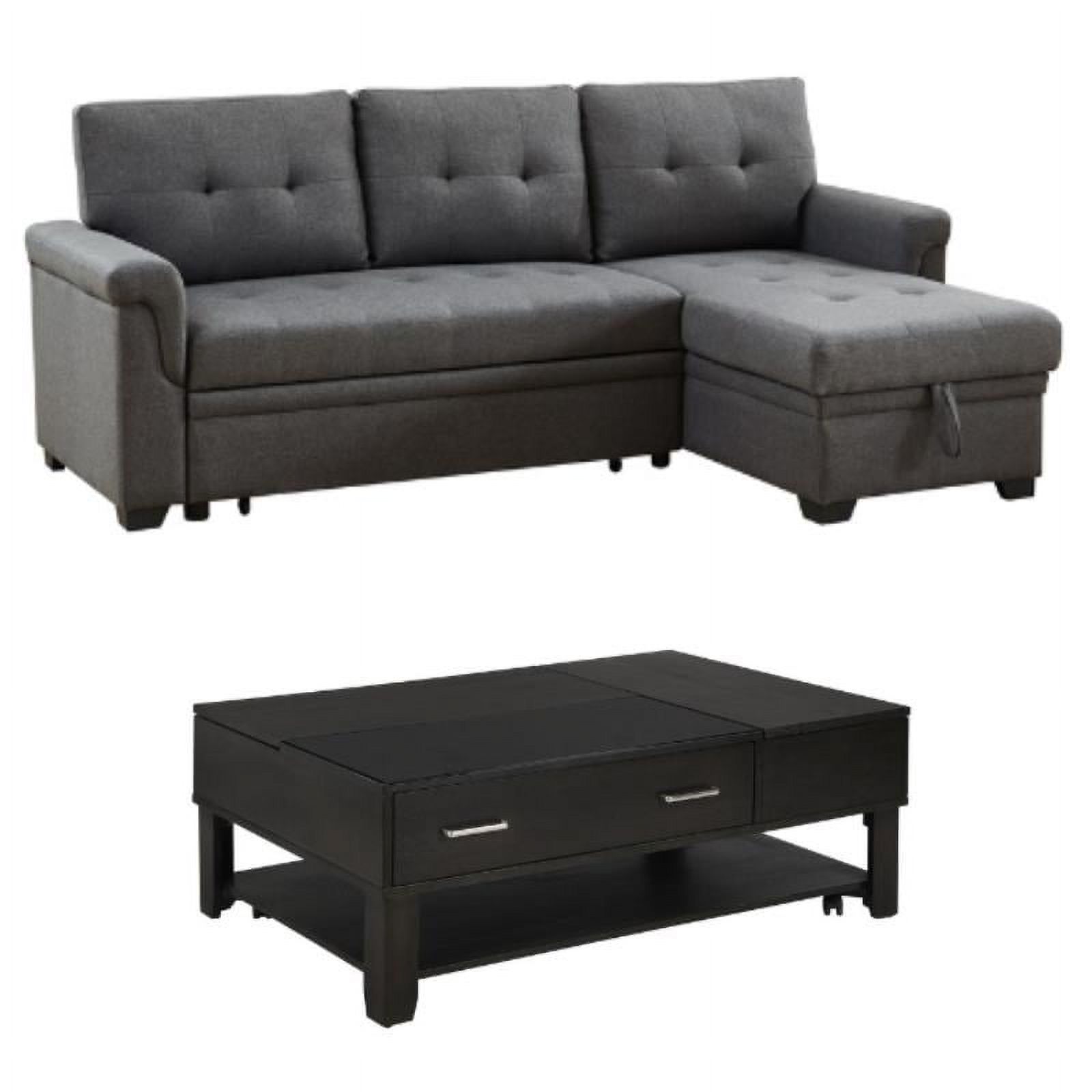 Home Square 2-Piece Set with Reversible Sleeper Sofa and Coffee Table in Gray