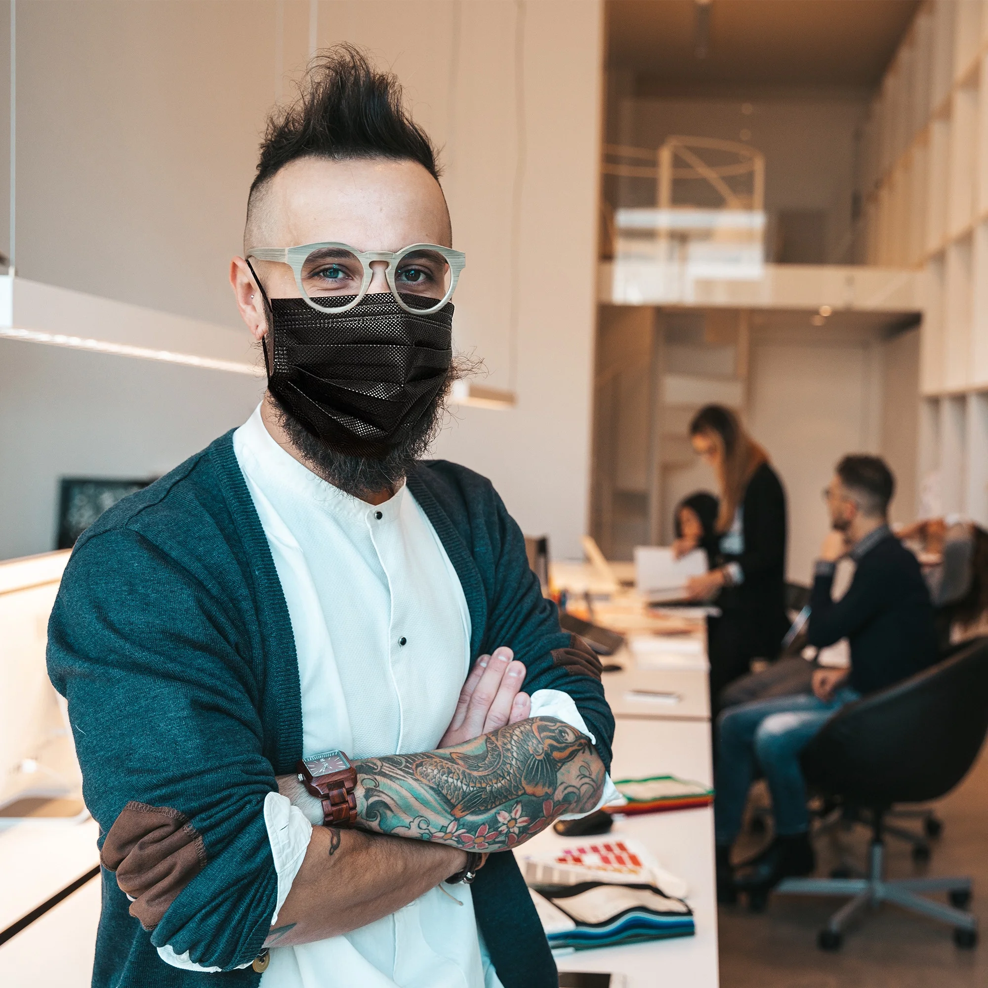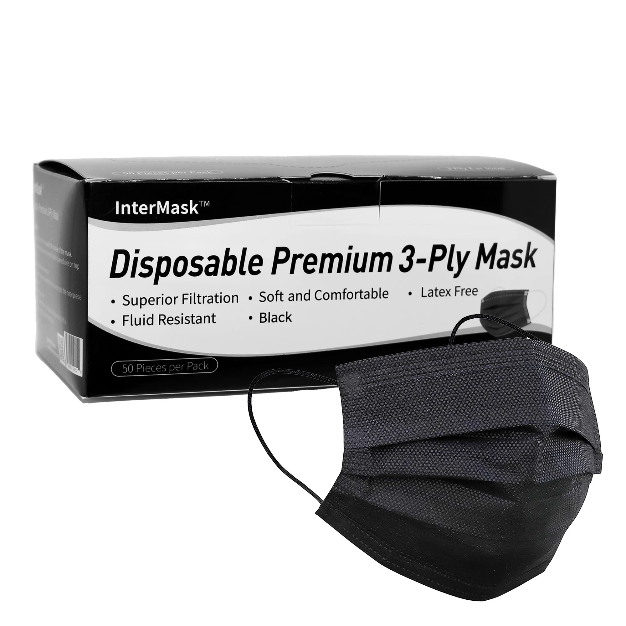 InterMask Disposable Premium 3-Ply ASTM Level 3 Mask, Black, Case of 2000