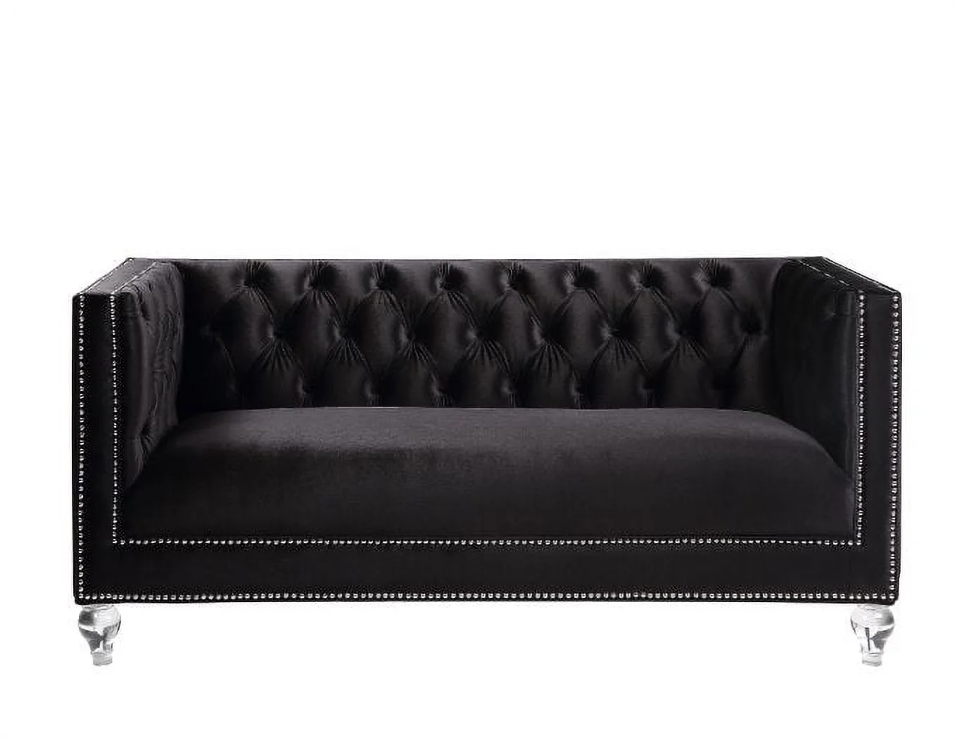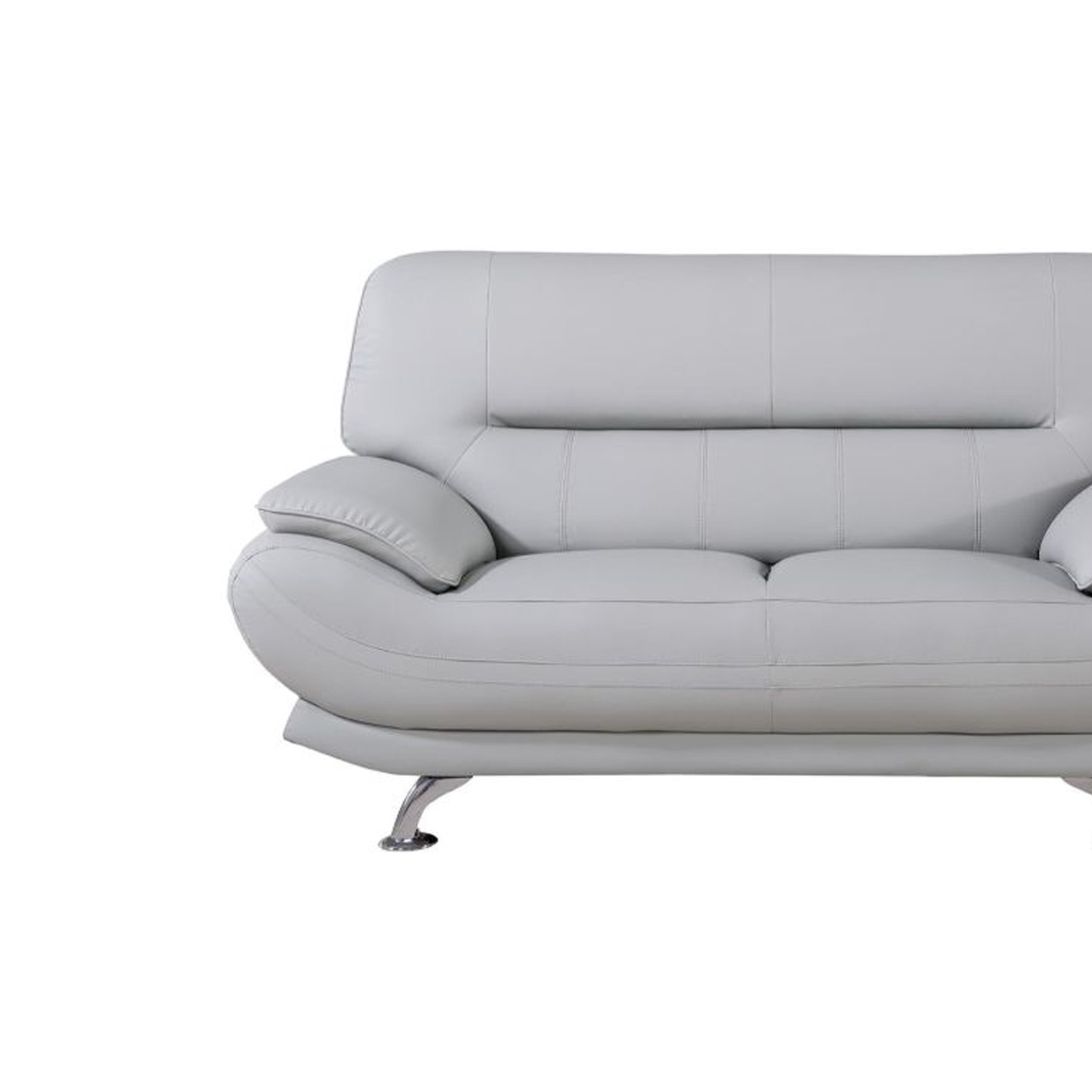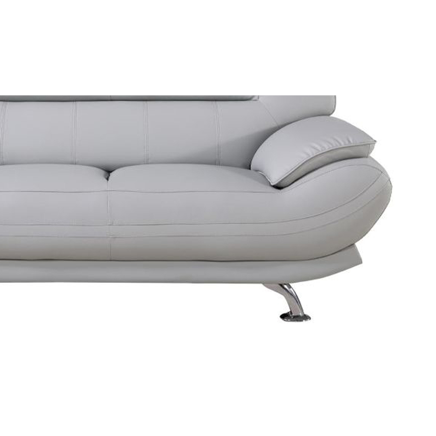 Benjara Faux Leather Upholstered Wooden Loveseat with Pillow Top Armrest, Light Gray and Silver