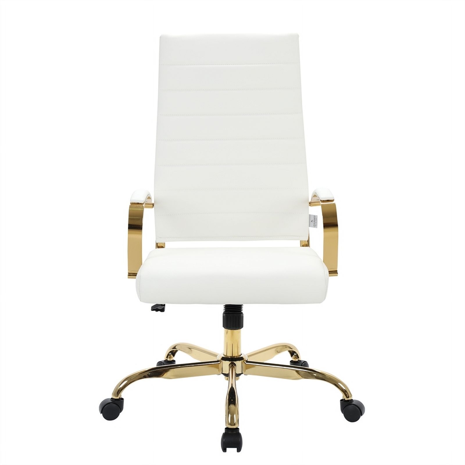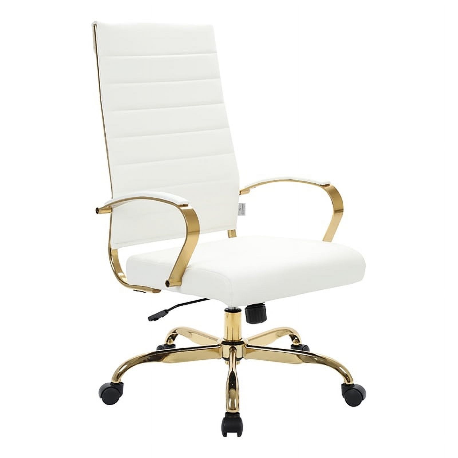 Scranton & Co Modern Faux Leather/Steel High-Back Office Chair in White/Gold