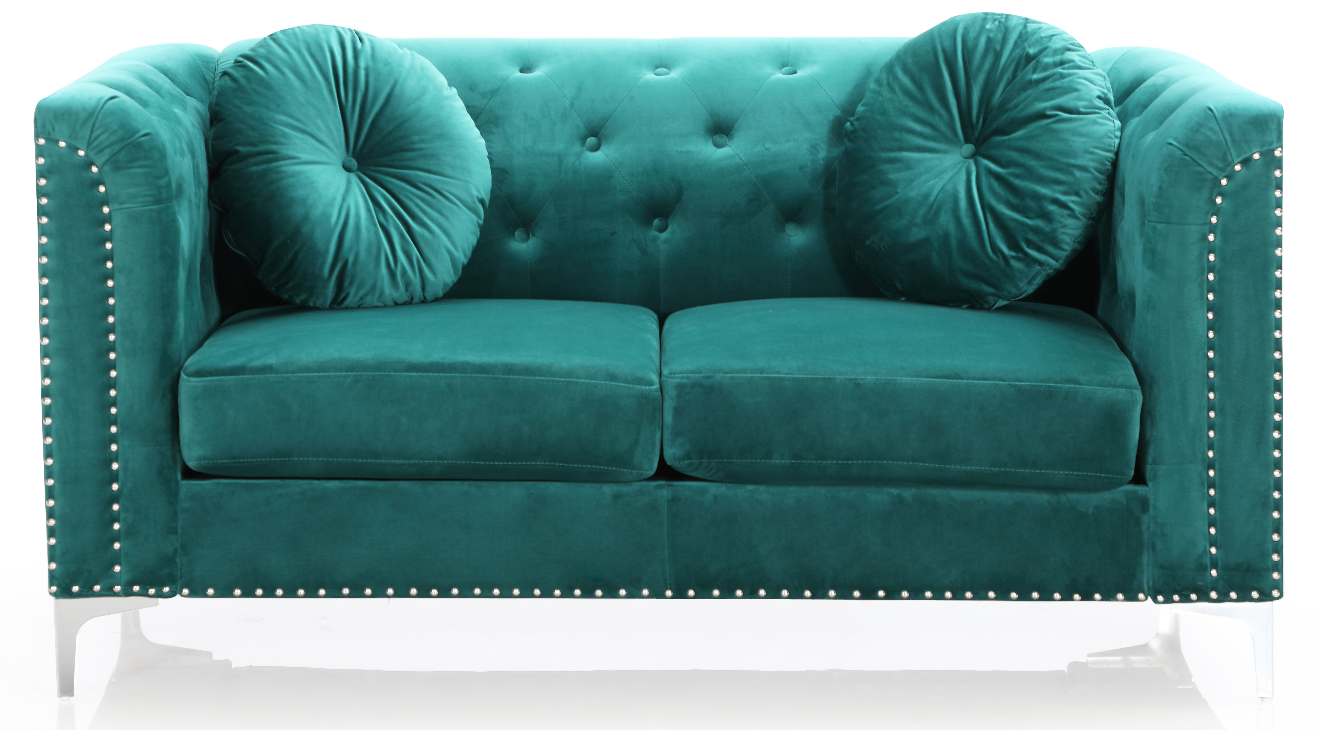 Home Square 2 Piece Mid-Century Velvet Living Room Loveseat Set in Blue