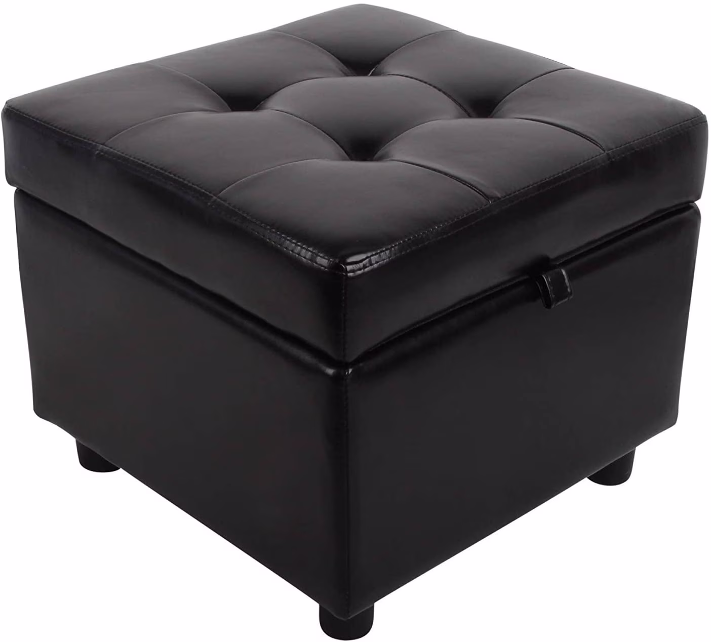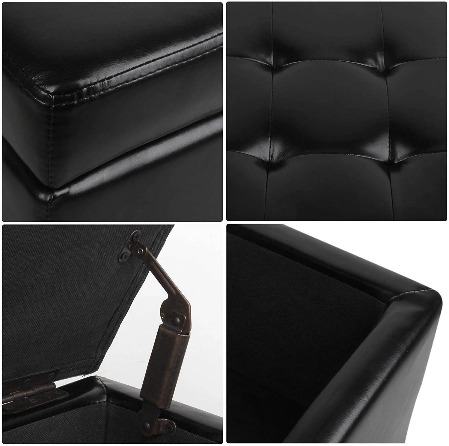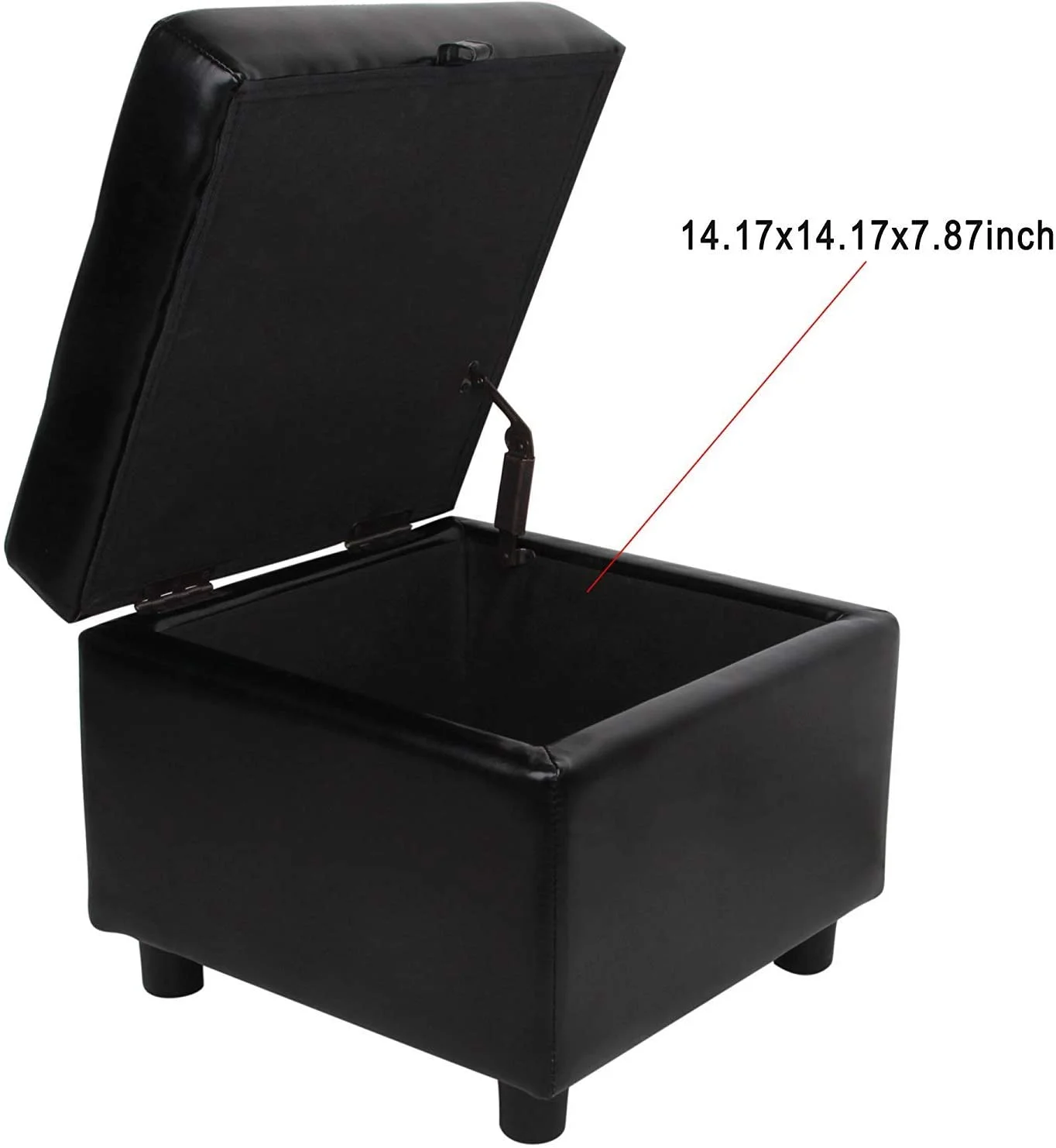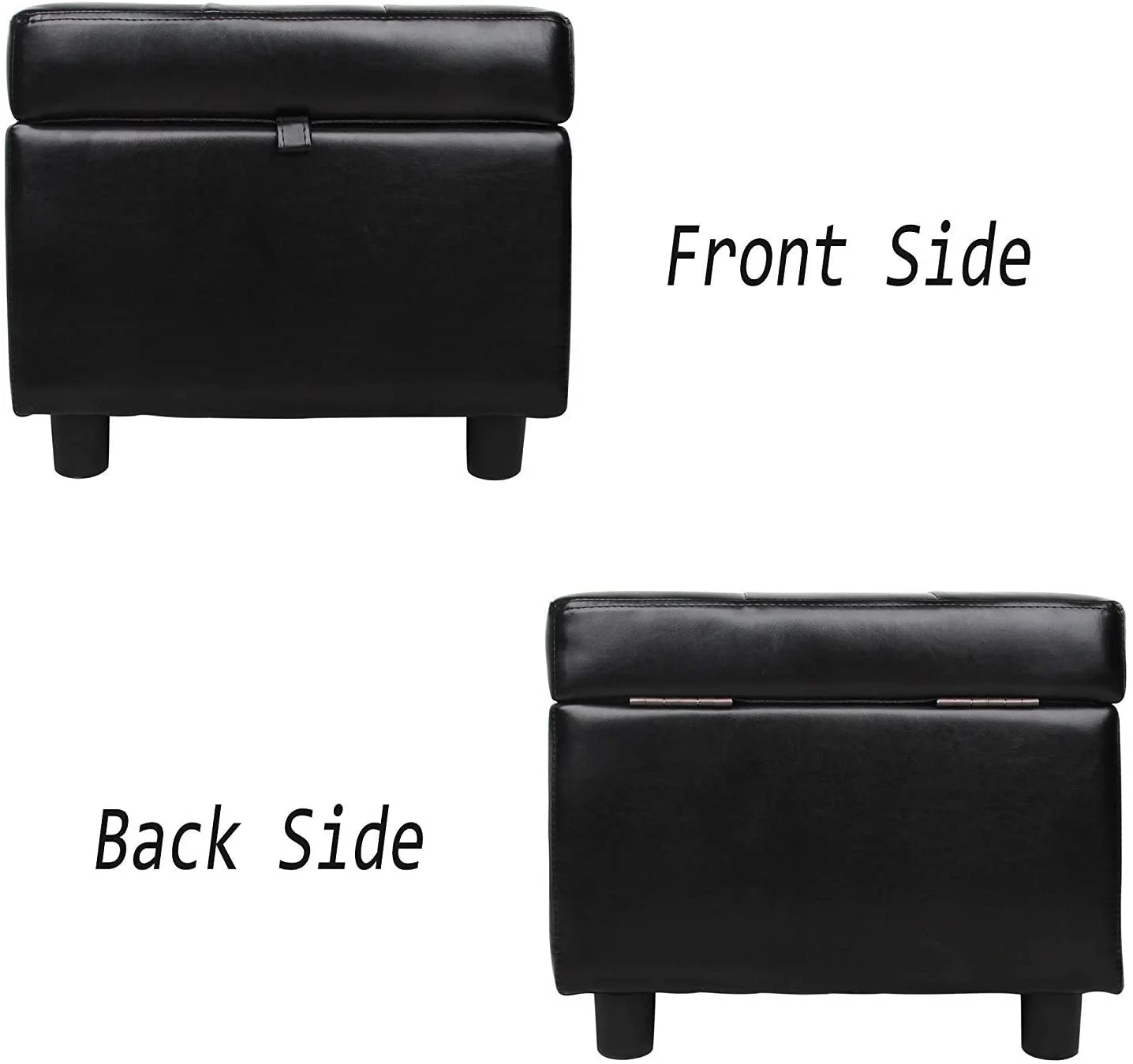 Tufted Leather Square Flip Top Storage Ottoman Cube Foot Rest, Black ST-SOPUBL1